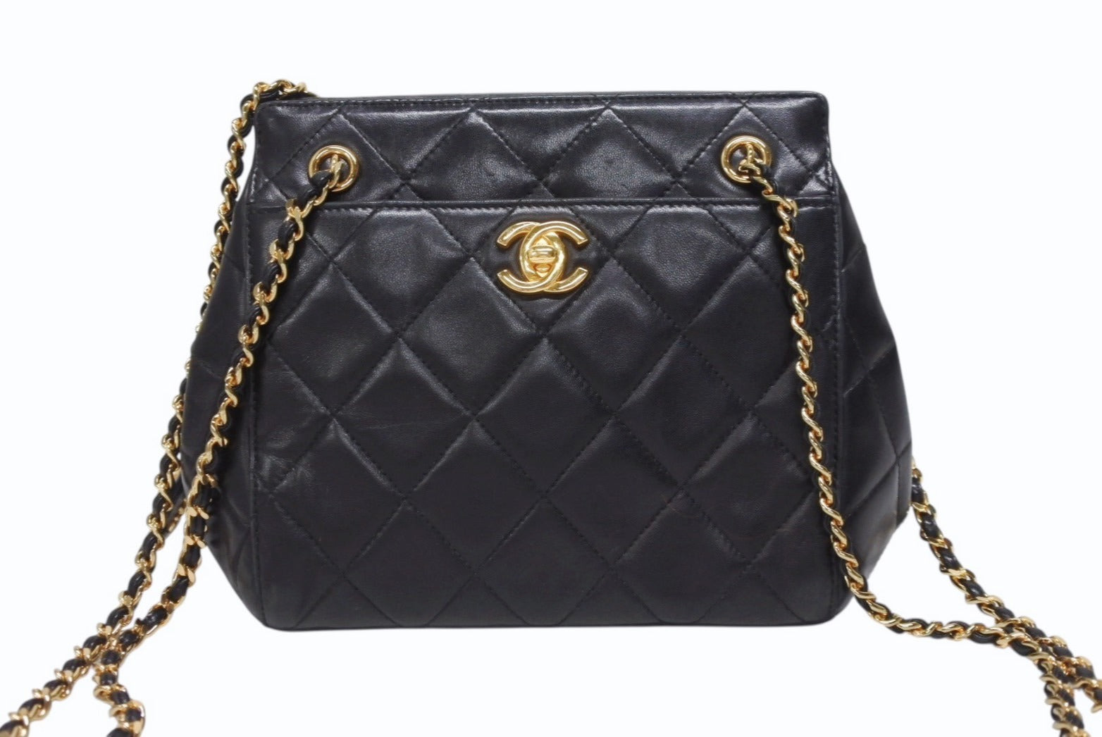 ターンロックチャームやロゴ金具チャームなどシャネルの魅力の詰まったショルダーバッグです。コンパクトなサイズ感でデイリーにお使いいただけます。