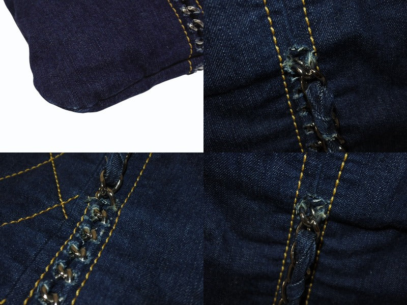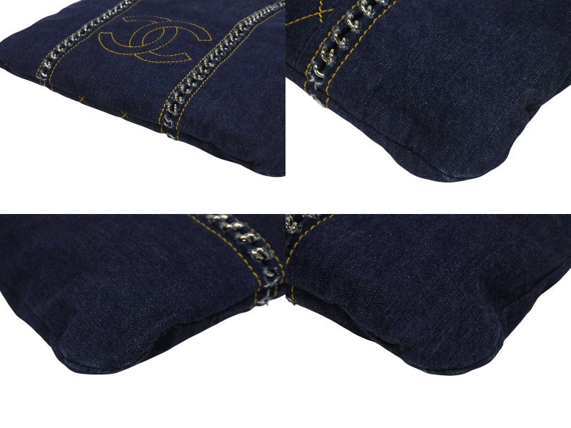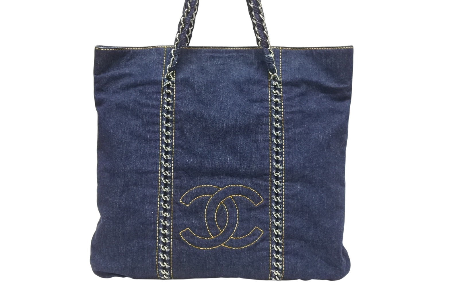 極美品 CHANEL シャネル ラグジュアリーライン チェーントートバッグ 10番台 ココマーク ステッチ デニム ネイビー シルバー金具 中古 4b005451