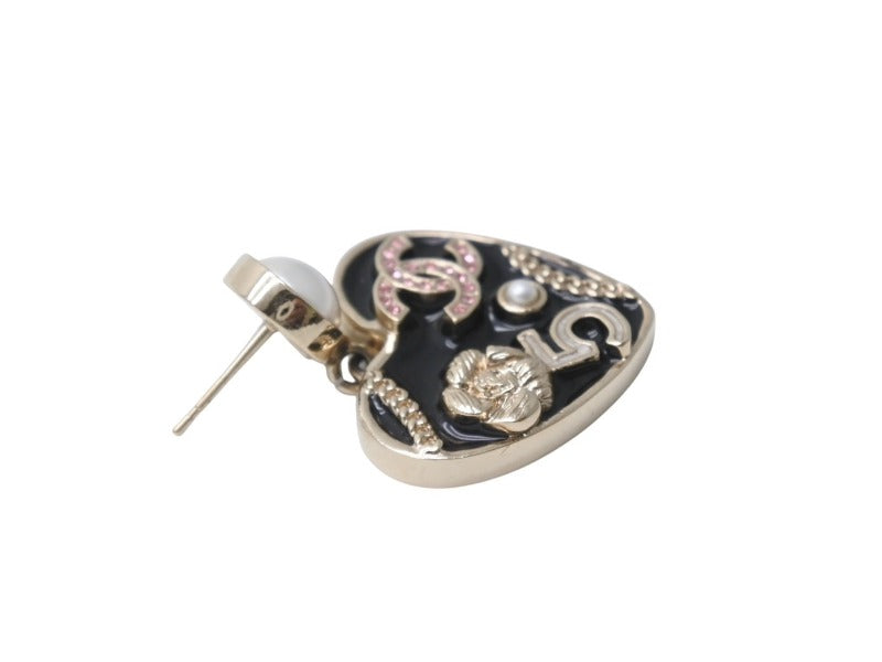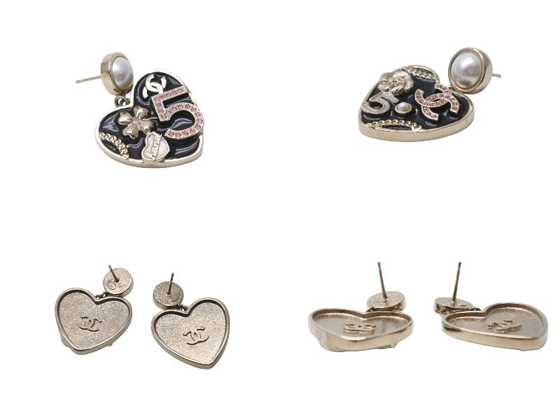 CHANEL シャネル ドロップピアス 重量約21.0g B24S刻印 ココマーク ハート パール No.5 カメリア メタル ゴールド ブラック 美品 中古 4b005541