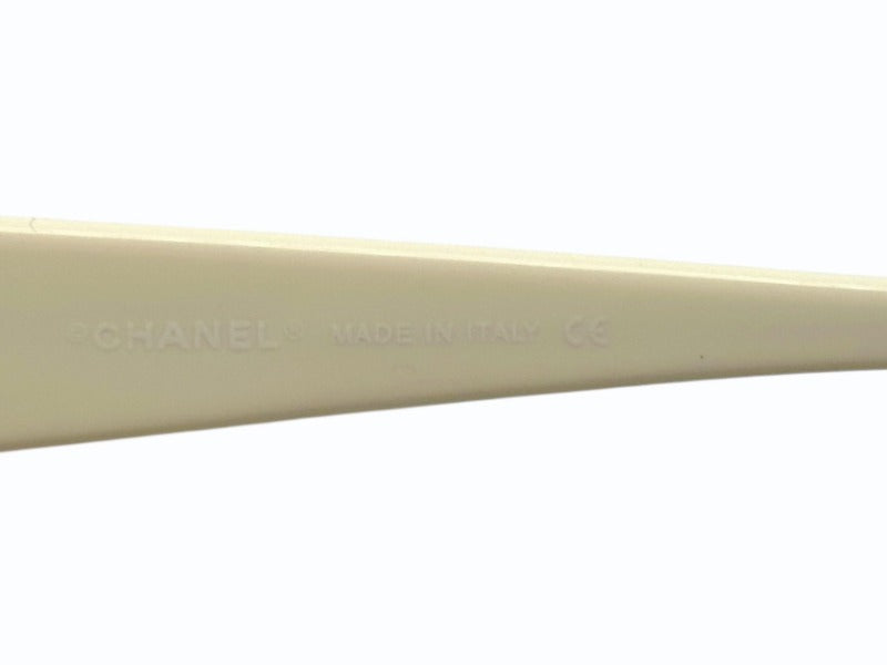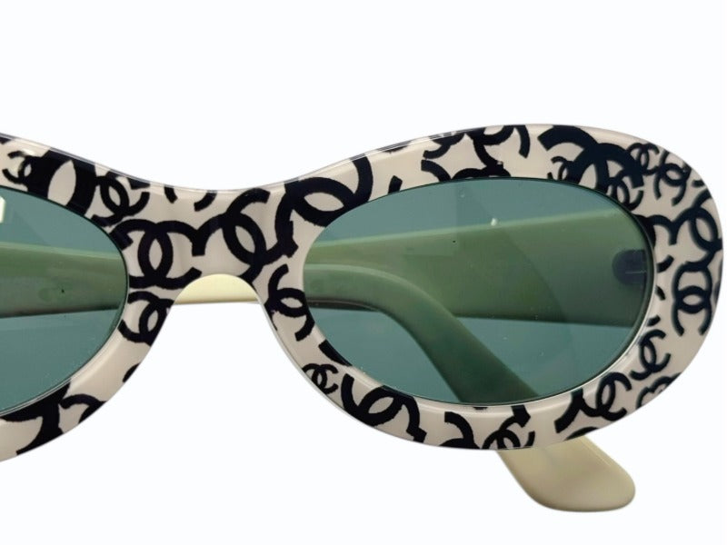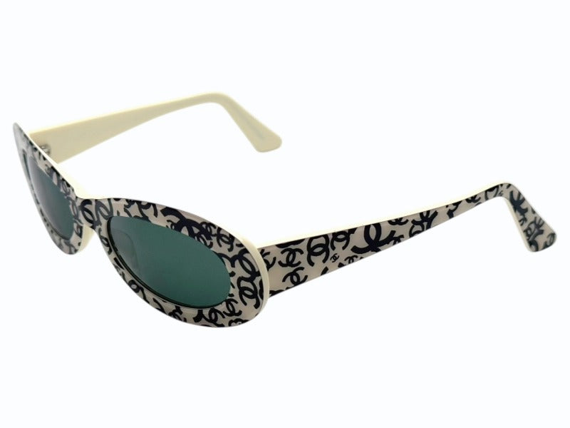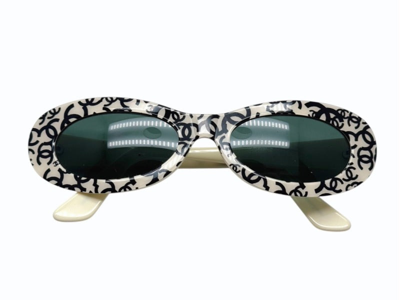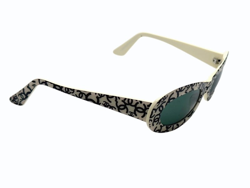 CHANEL シャネル オーバルサングラス アイウェア 18316 C0200 アイボリー ブラック ココマーク 総柄 美品 中古 4b005720