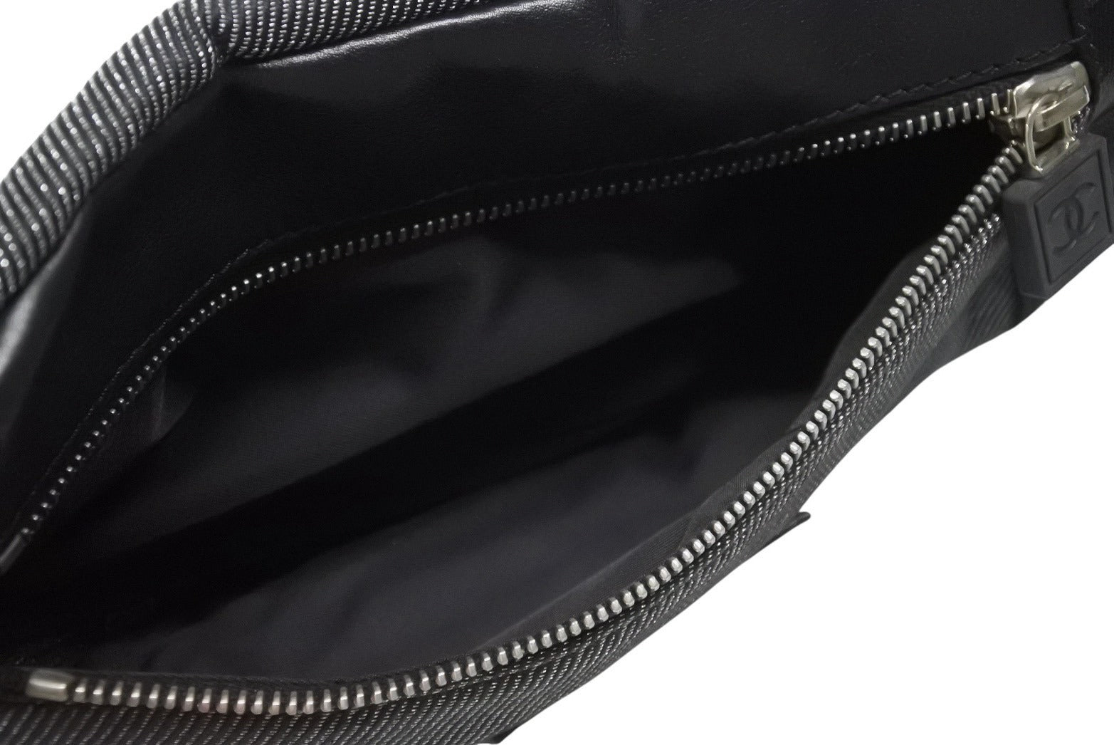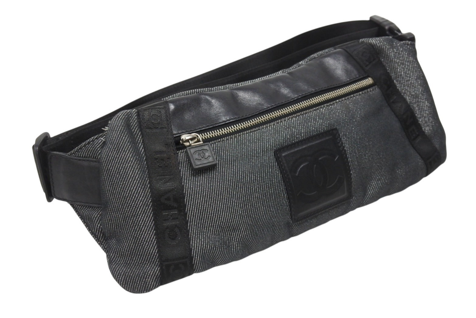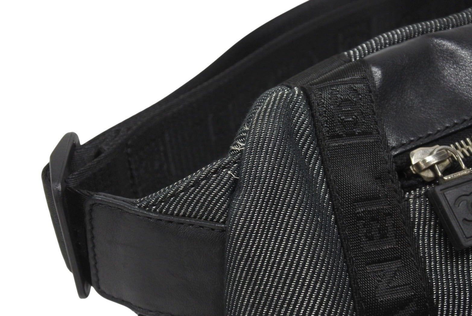 CHANEL シャネル スポーツライン ココマーク ウエストバッグ 10番台 ボディバッグ ブラック レザー ロゴ ジャガード シルバー金具 美品 中古 4b005860