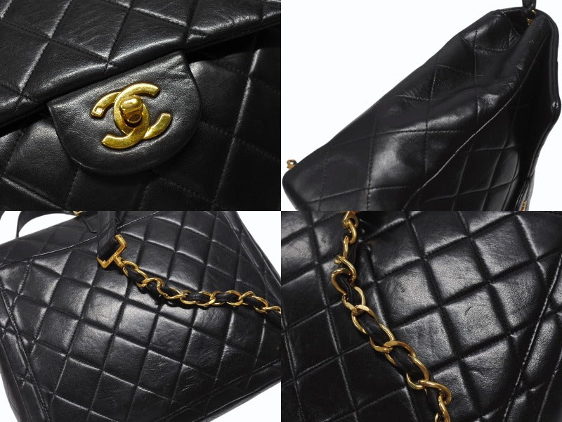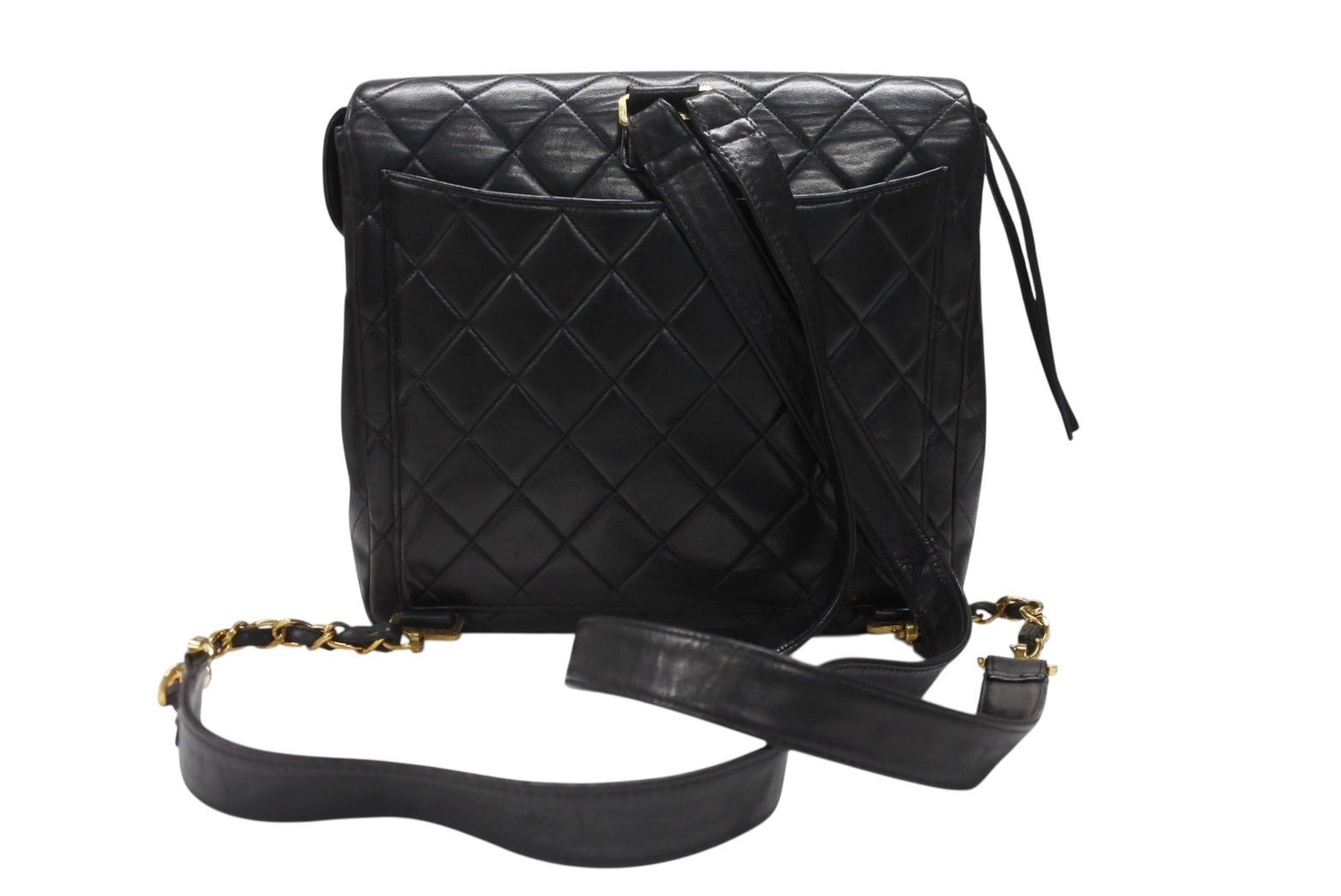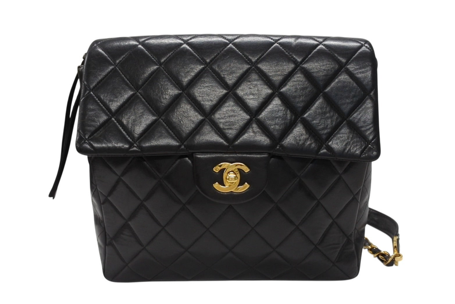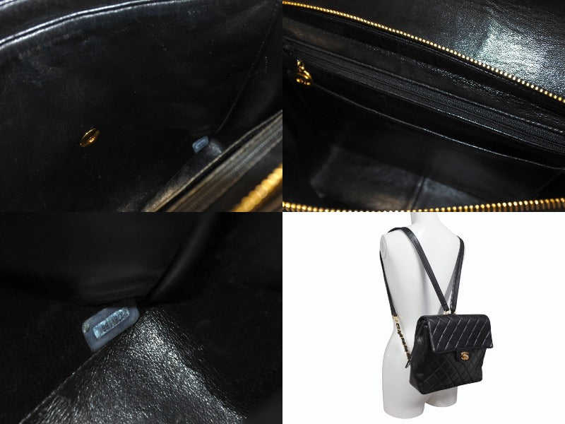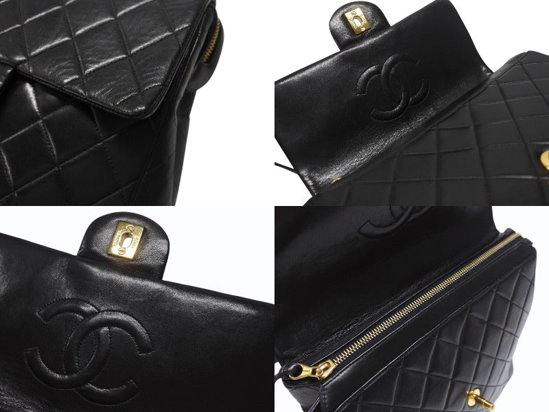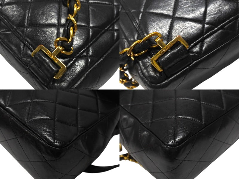 CHANEL シャネル マトラッセラムスキン チェーン スクエアリュック ココマーク ブラック ゴールド金具 美品 中古 4b005940