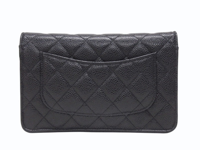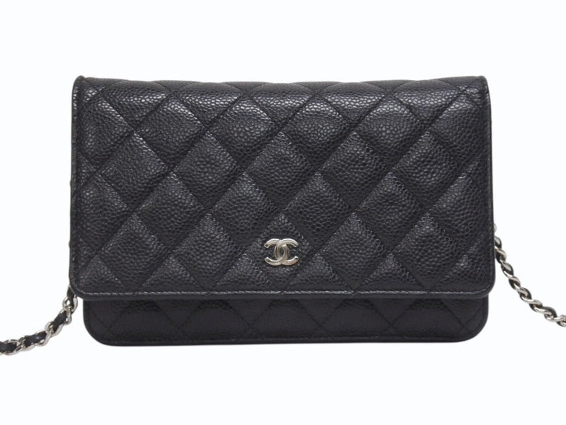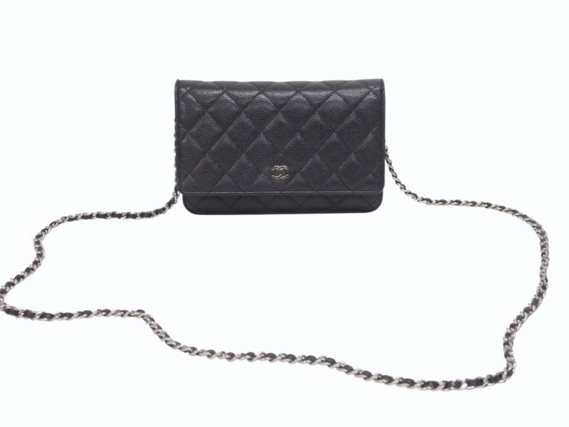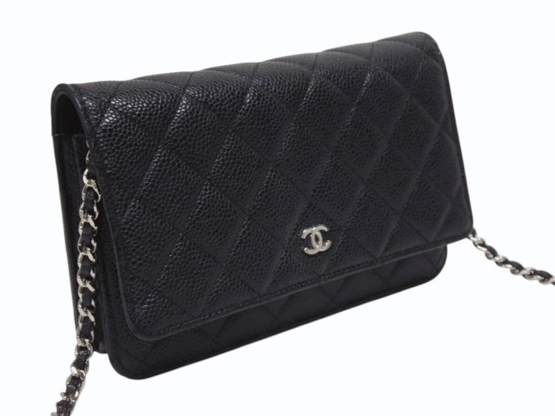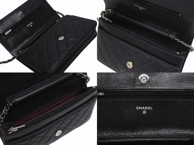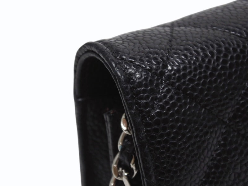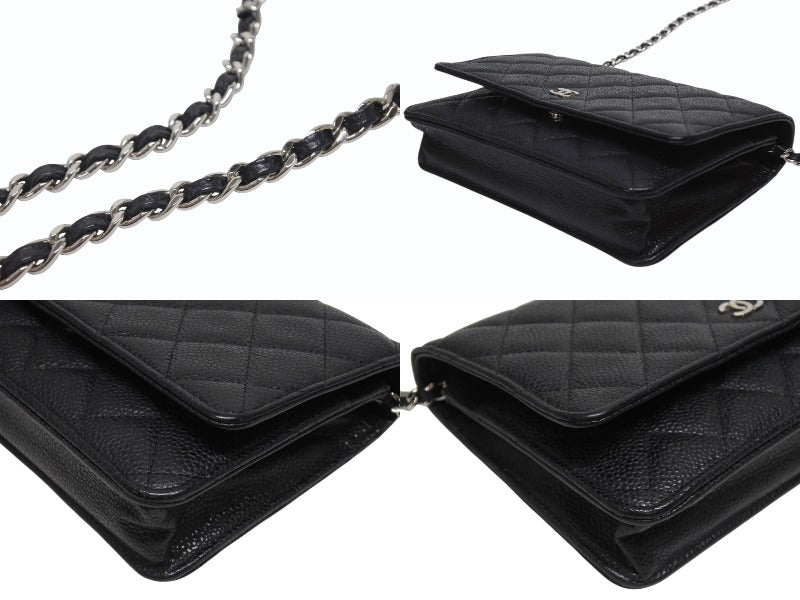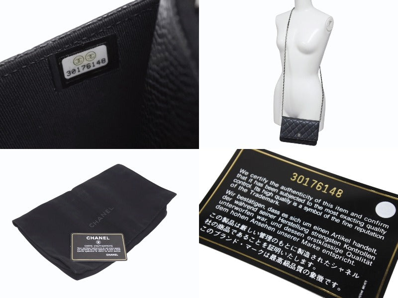 極美品 CHANEL シャネル クラシック チェーンウォレット AP0250 30番台 キャビアスキン ココマーク キルティング ブラック 中古 4b005962