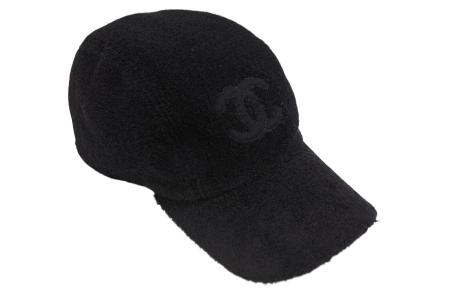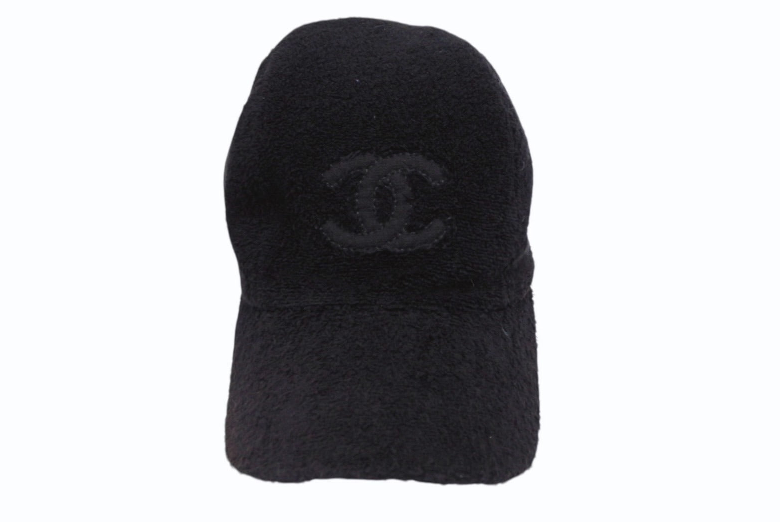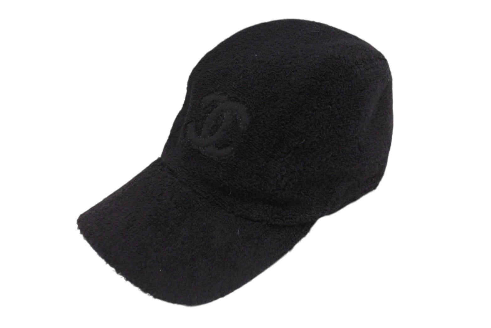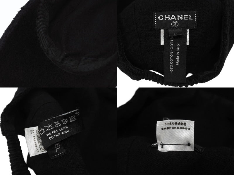 CHANEL シャネル パイル キャップ ハット 帽子 サイズM ココマーク コットン ブラック 美品 中古 4b006657