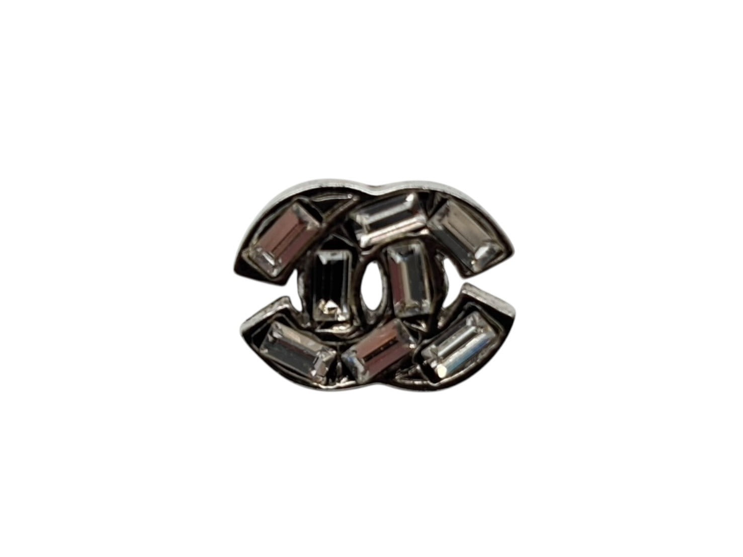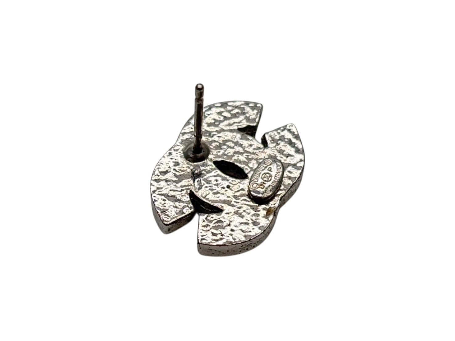 極美品 CHANEL シャネル ピアス ココマーク 両耳 07A刻印 4.2g メタル スクエアラインストーン シルバー金具 中古 4b009601