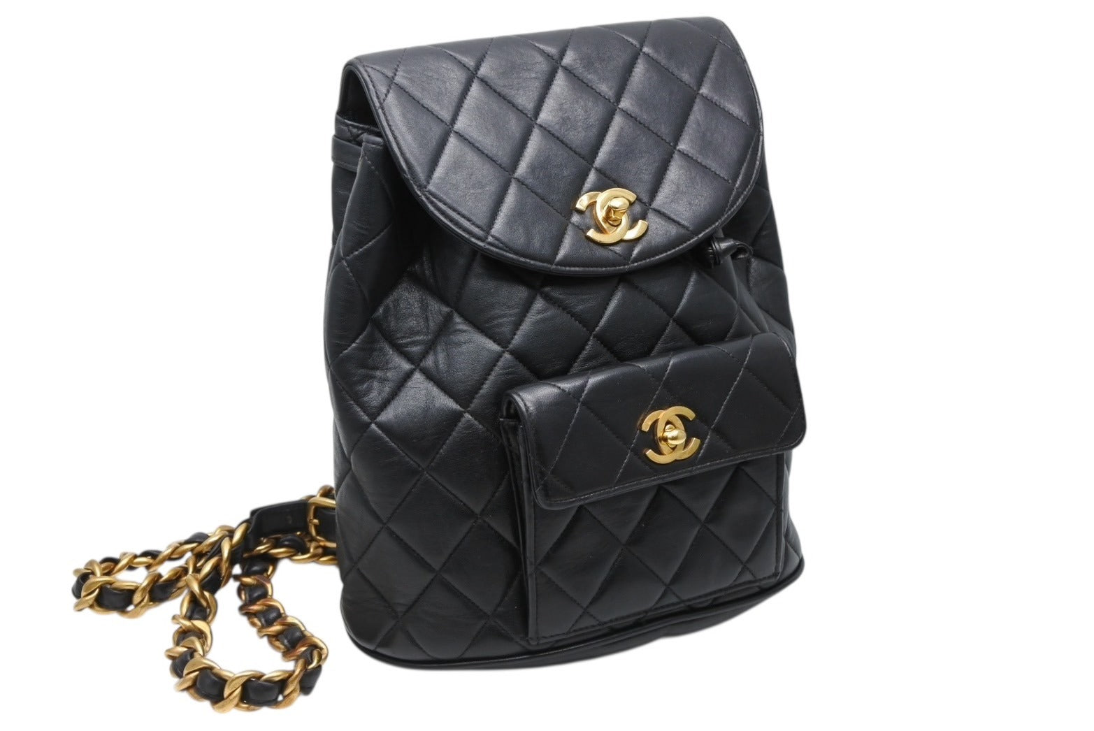 CHANEL シャネル マトラッセ バックパック リュック A07205 ラムスキン ココマーク ブラック ヴィンテージ ゴールド金具 美品 中古 4b009762