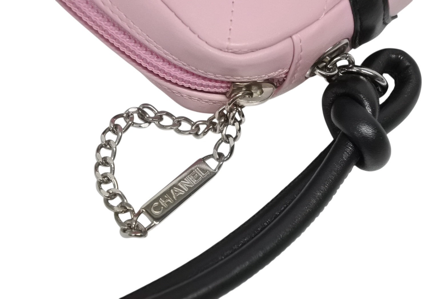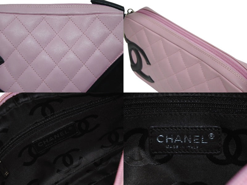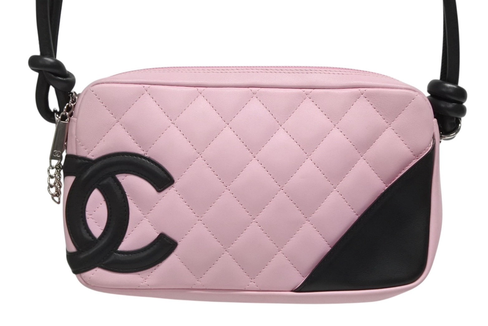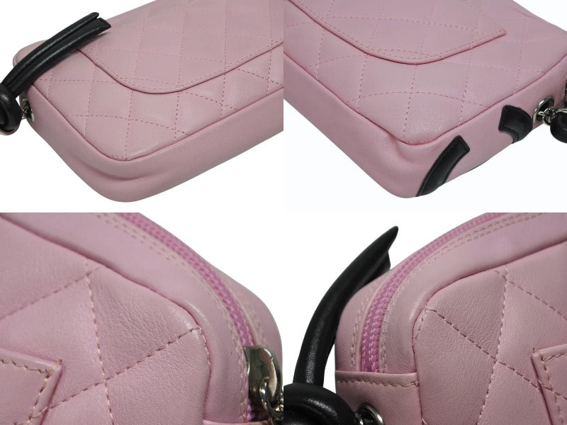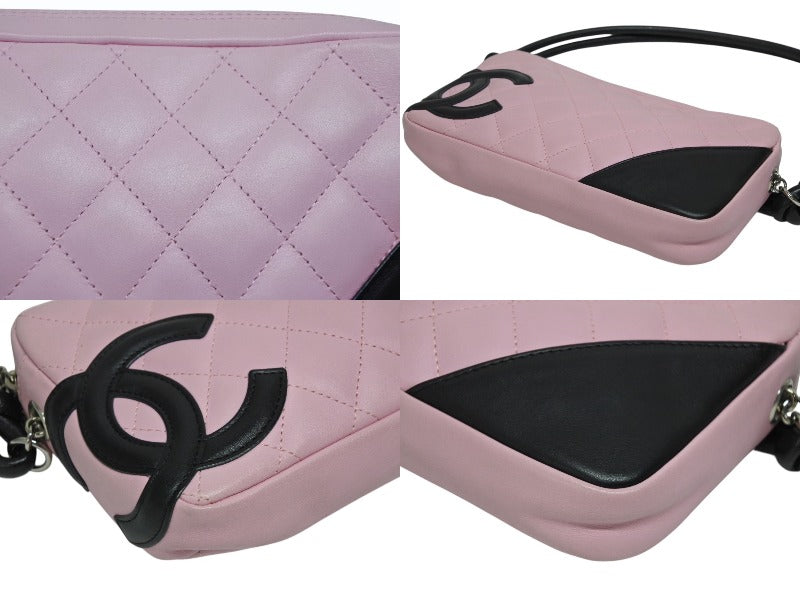 極美品 CHANEL シャネル カンボンライン ワンショルダーバッグ 9番台 ココマーク カーフスキン キルティング ピンク ブラック 中古 4b010112
