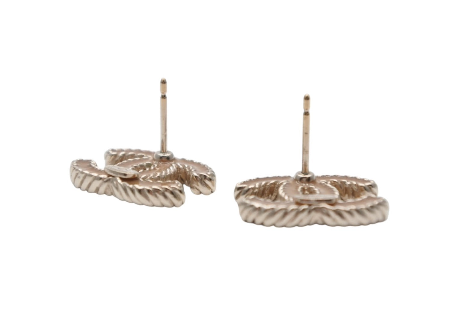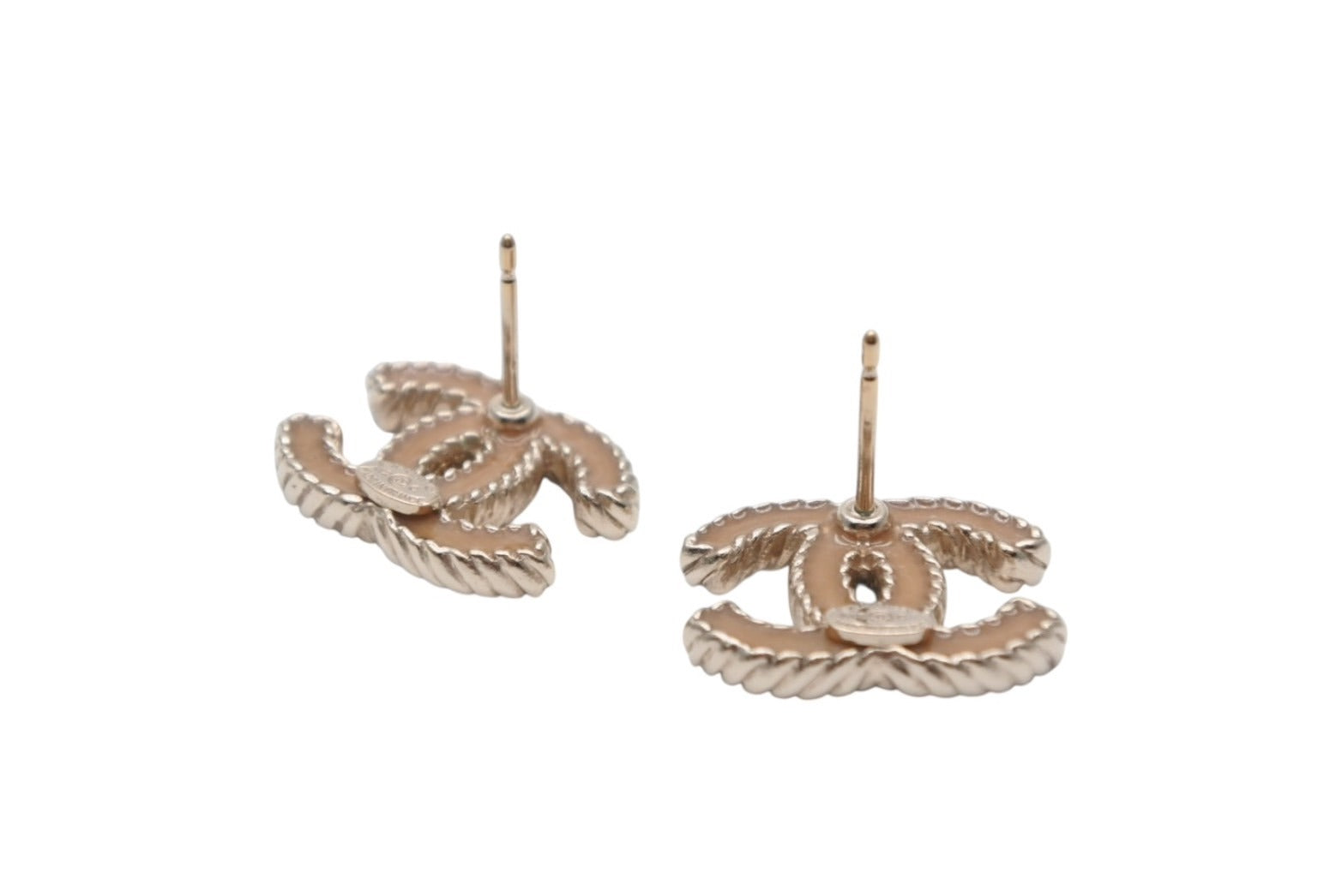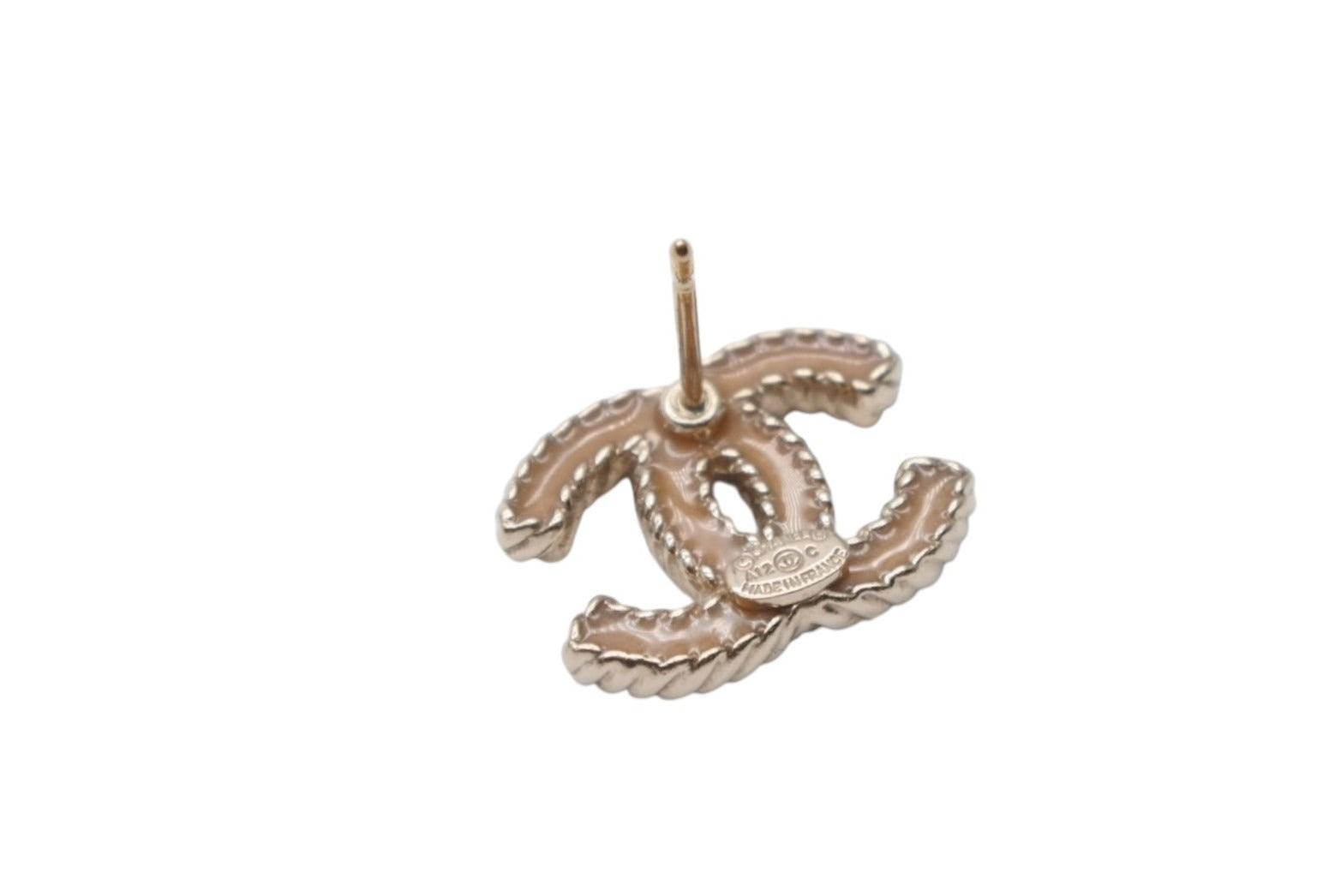 極美品 CHANEL シャネル ココマーク ピアス 重量約3.9g A12C刻印 エナメル メタル GP ゴールド ベージュ 両耳用 中古 4b010286