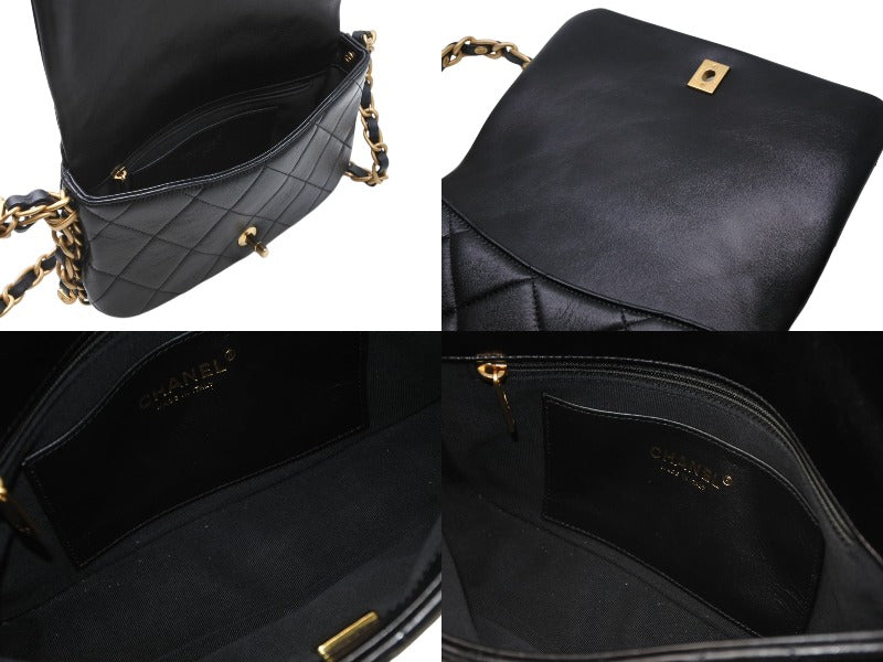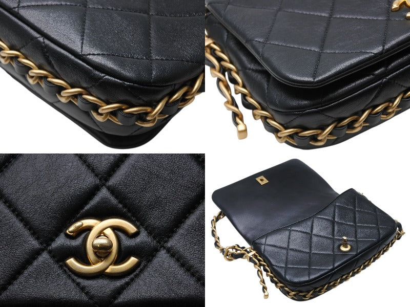 極美品 CHANEL シャネル マトラッセ チェーンショルダーバッグ ランダム番台 ラムスキン ココマーク ブラック ゴールド金具 中古 4b010299