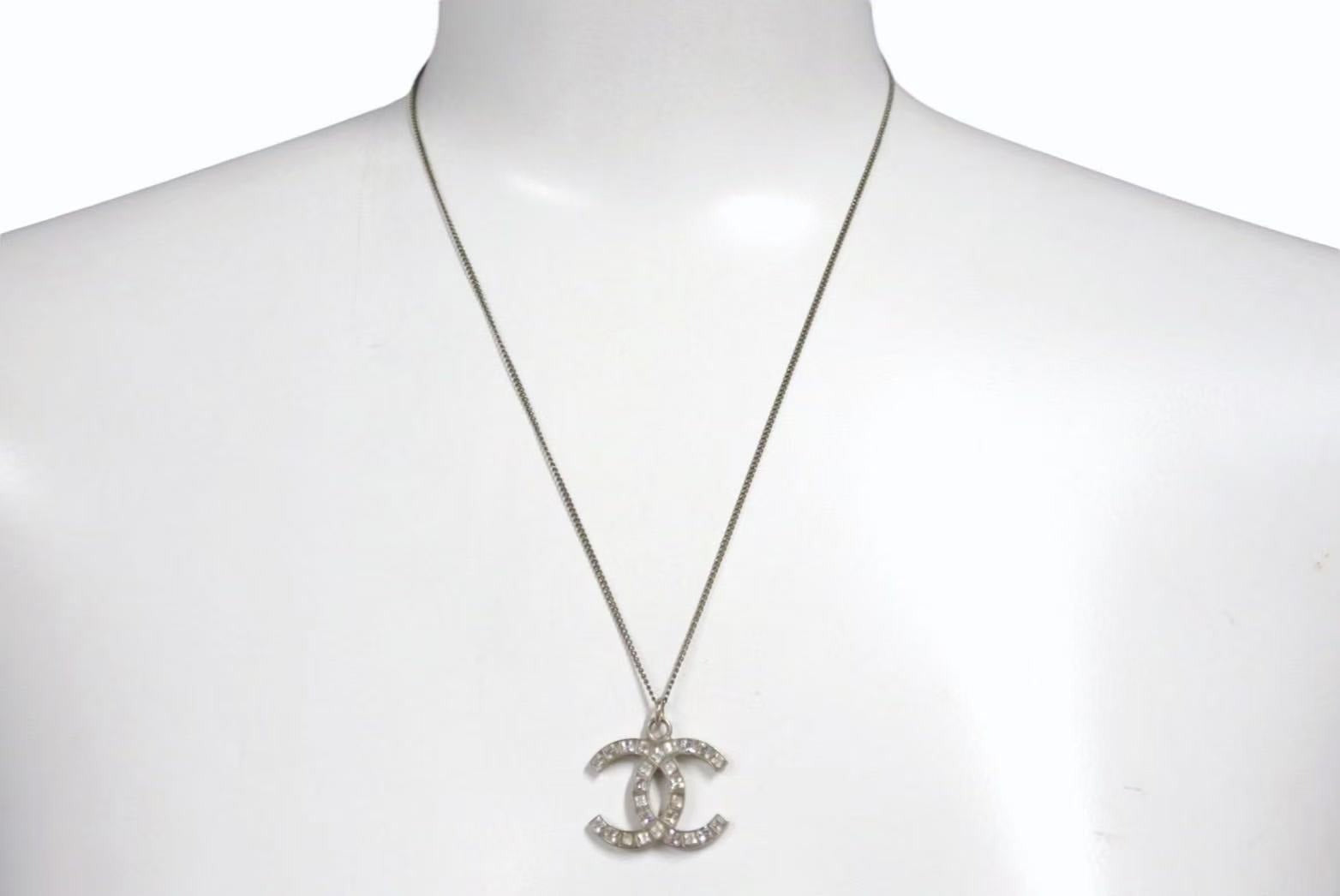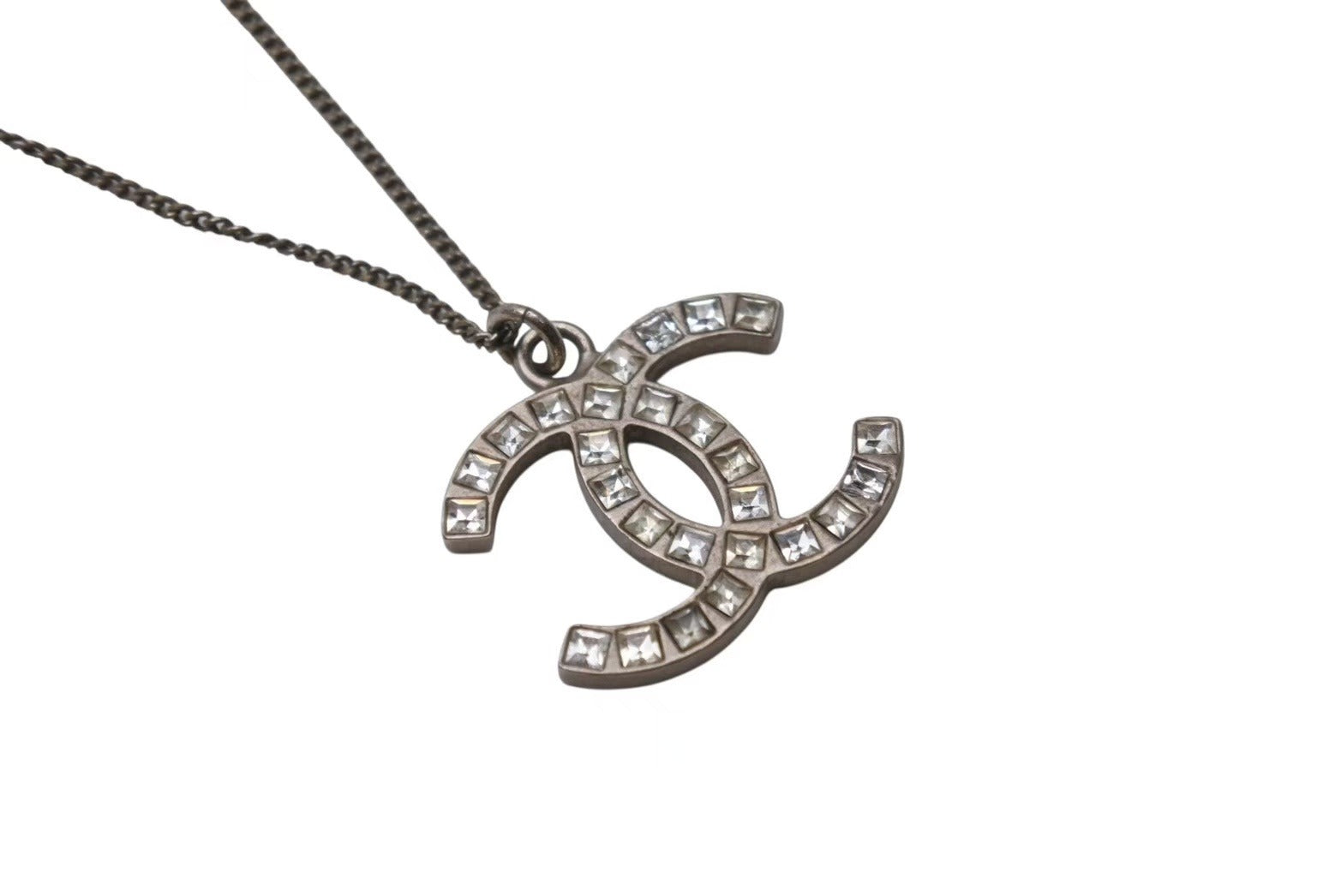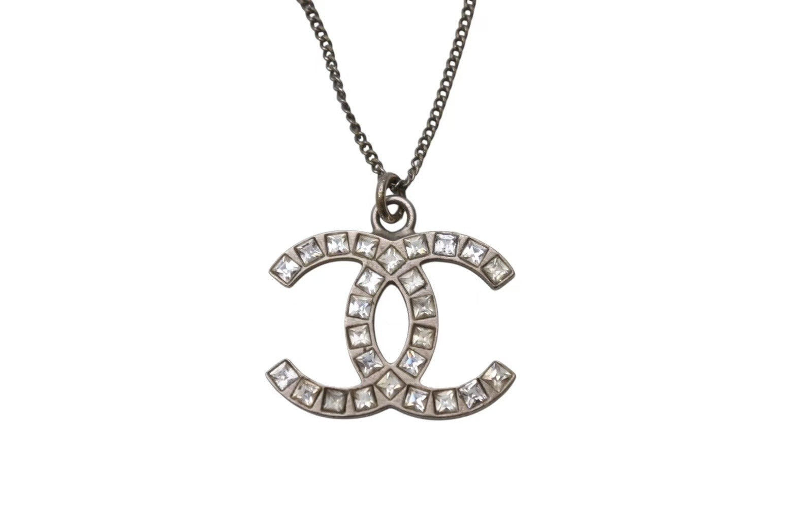 CHANEL シャネル ネックレス ココマーク アクセサリー 13P刻印 メタル スクエアストーン シルバー 5.6g 美品 中古 4c053612