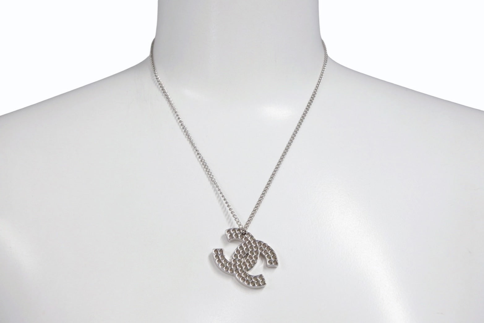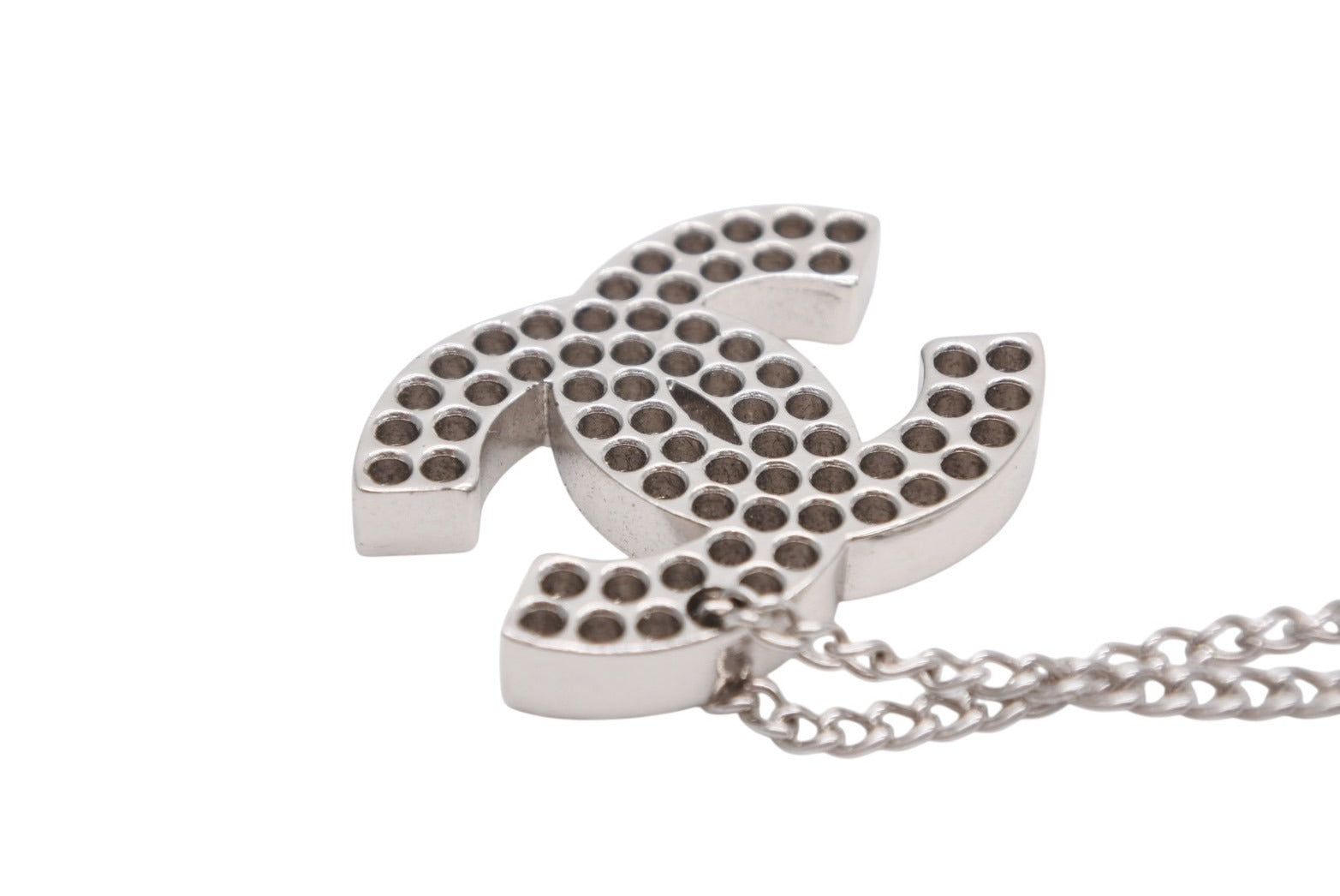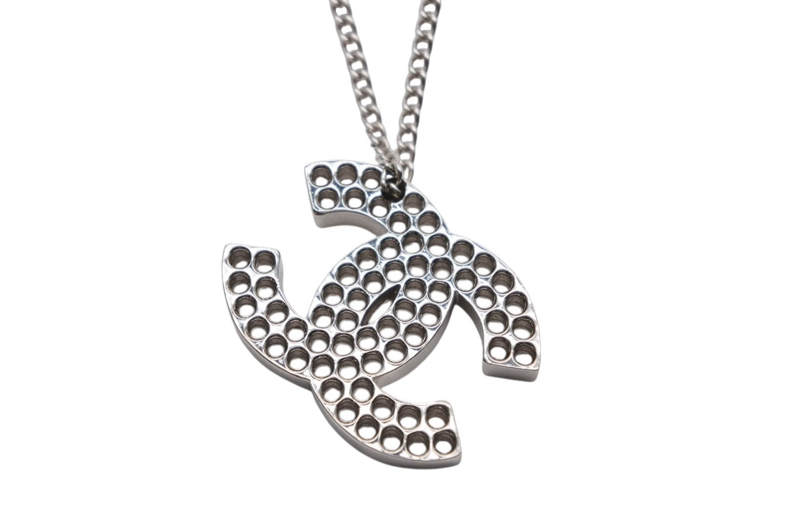 極美品 CHANEL シャネル ココマーク パンチング ネックレス 12g 03P メタル シルバー ロゴ アクセサリー 美品 中古 4c060917