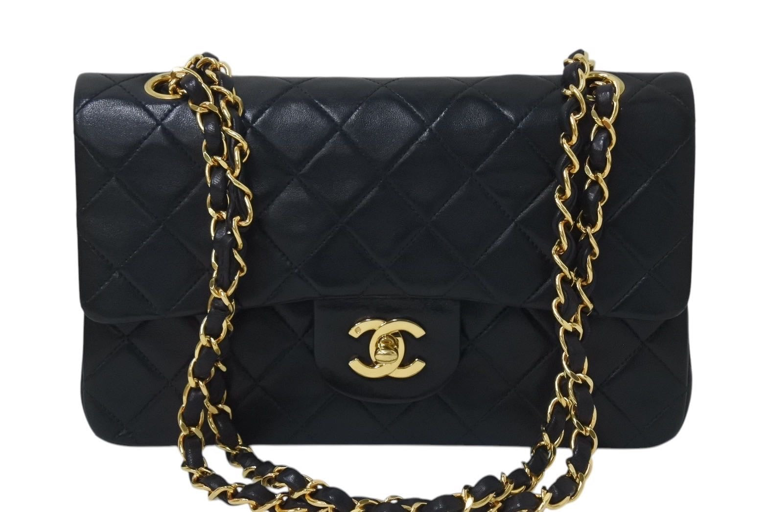 CHANEL シャネル マトラッセ23 Wフラップ チェーン ショルダーバッグ ラムスキン 2番台 ブラック ゴールド金具 美品 中古 4c071593