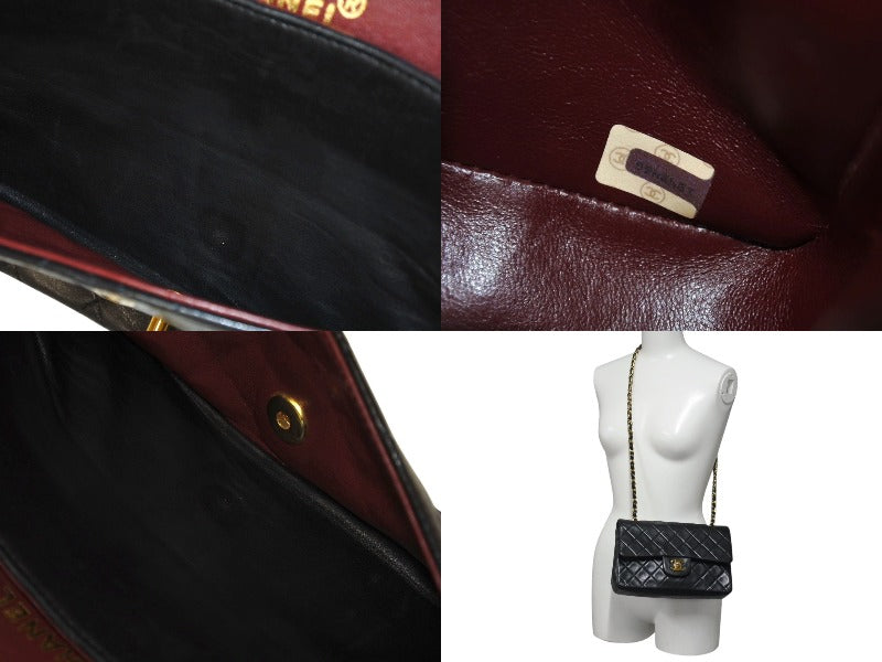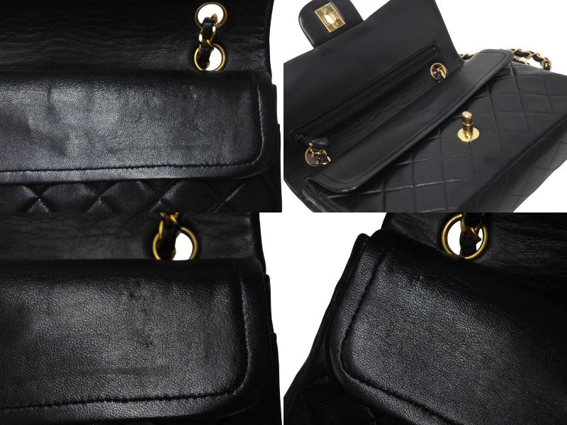 CHANEL シャネル マトラッセ23 Wフラップ チェーン ショルダーバッグ ラムスキン 1番台 ブラック ゴールド金具 美品 中古 4c071594