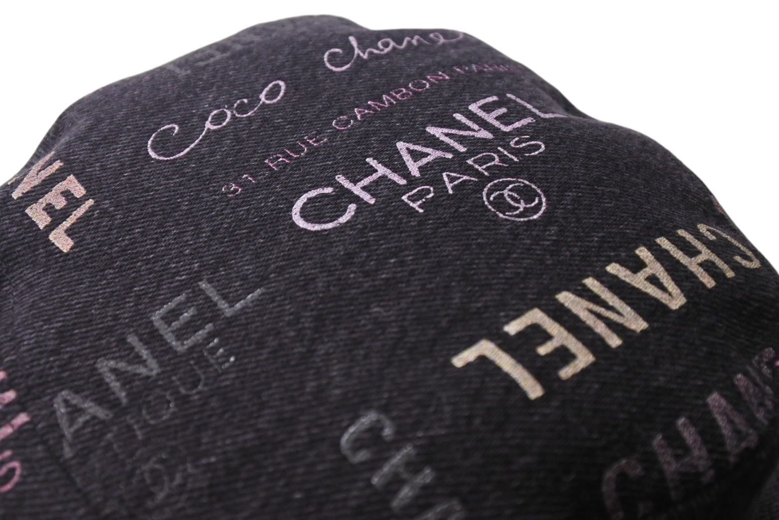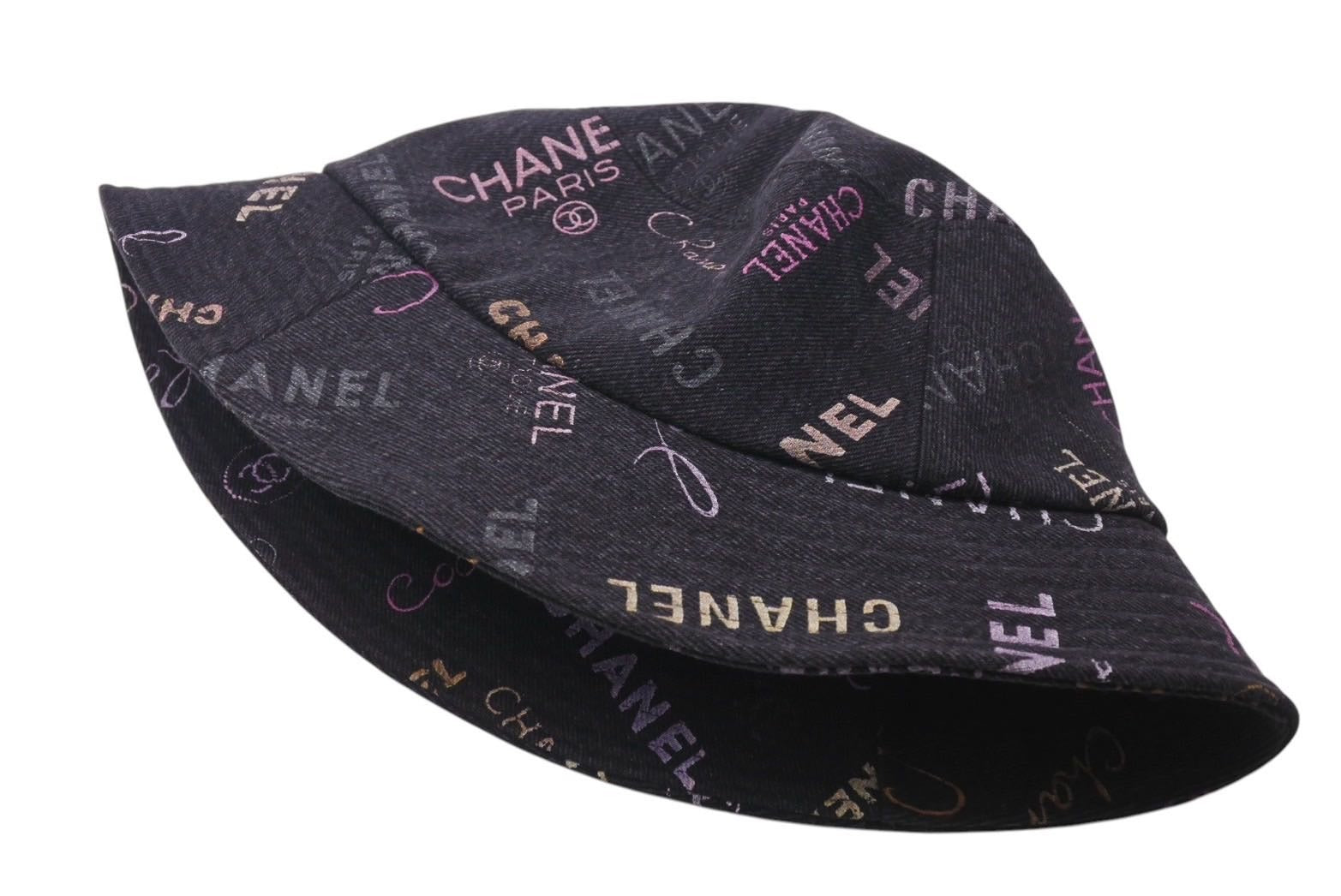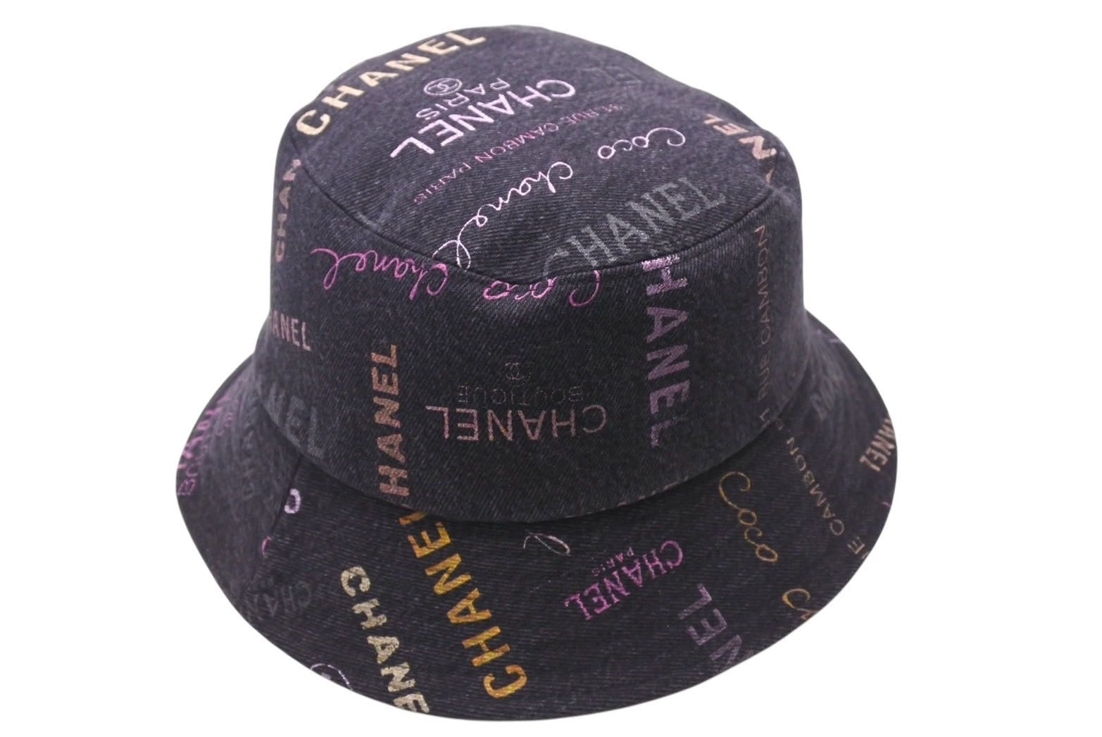 極美品 CHANEL シャネル 22SS バケットハット ロゴデニム イタリア製 コットン ブラック マルチカラー サイズM 中古 4c071787