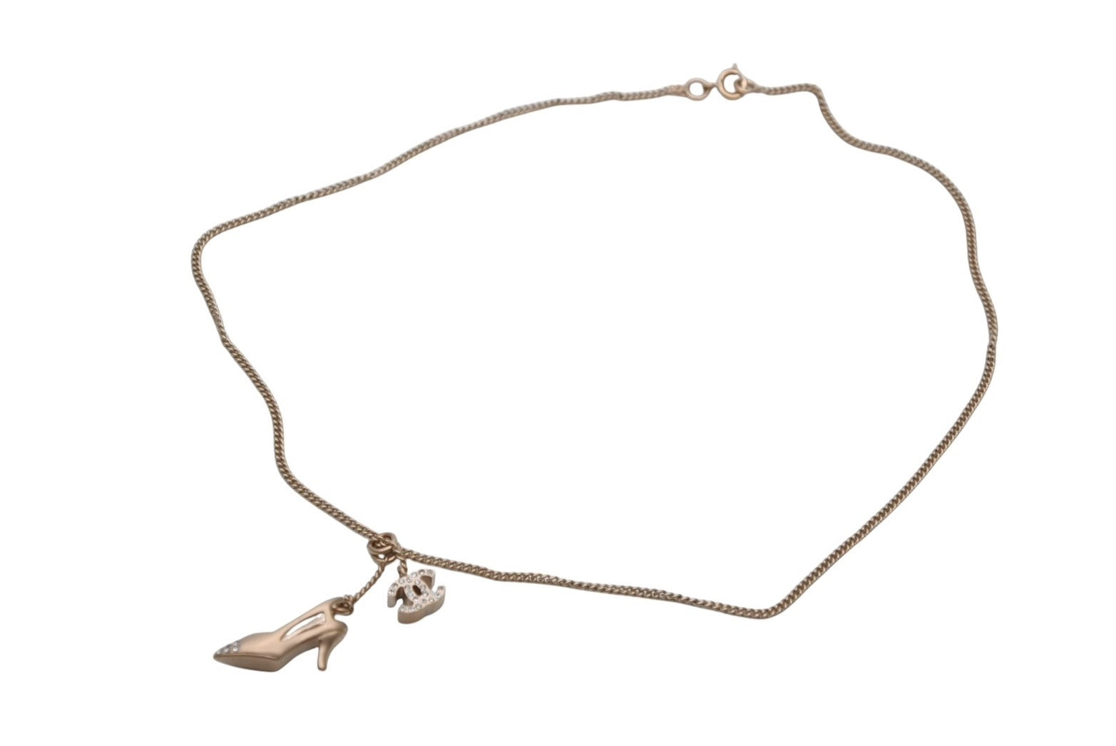 ラインストーンの施されたココマークとパンプスが目を惹くネックレスです。