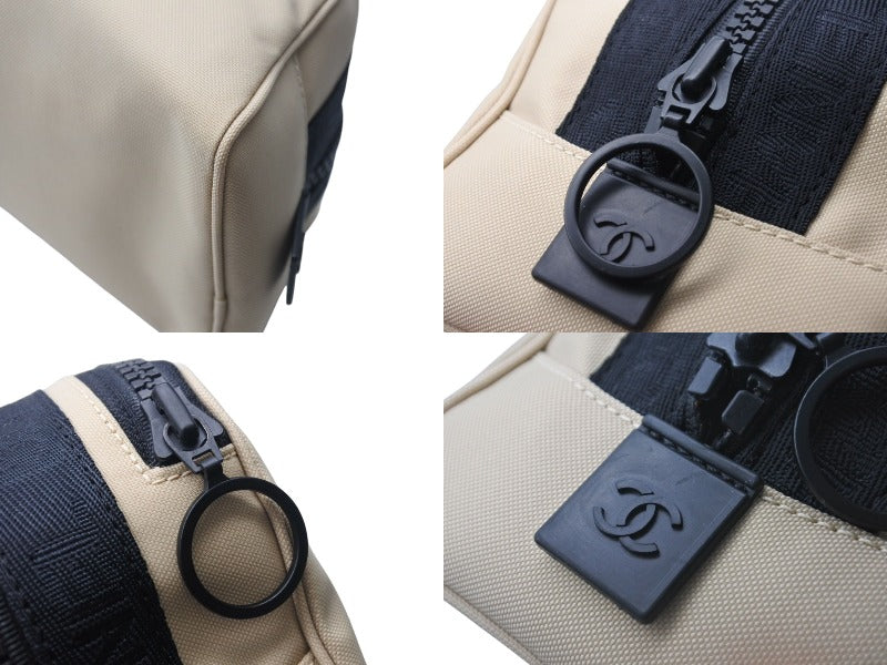 新品同様 CHANEL シャネル ポーチ A19975 スポーツライン 7番台 ココマーク ナイロン ラバー ベージュ ブラック金具 中古 4c072008