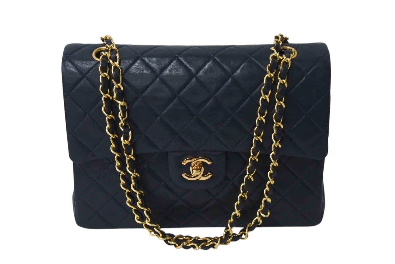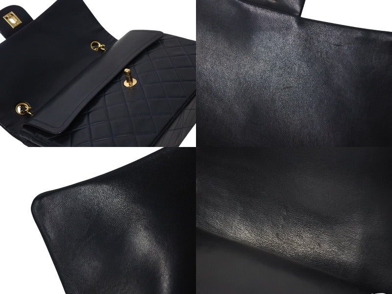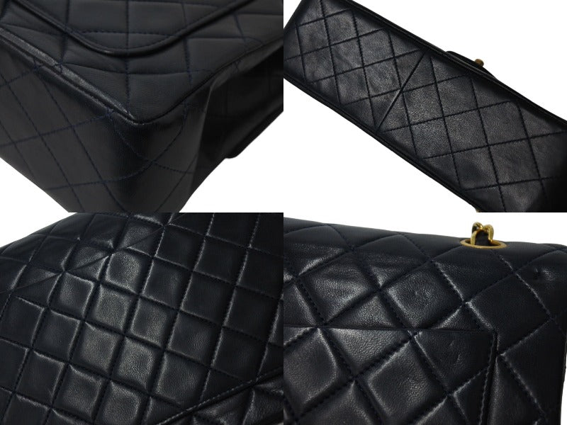 CHANEL シャネル マトラッセ25 ダブルフラップ ショルダーバッグ 1番台 ラムスキン ネイビー ワインレッド ゴールド 美品 中古 4c072487