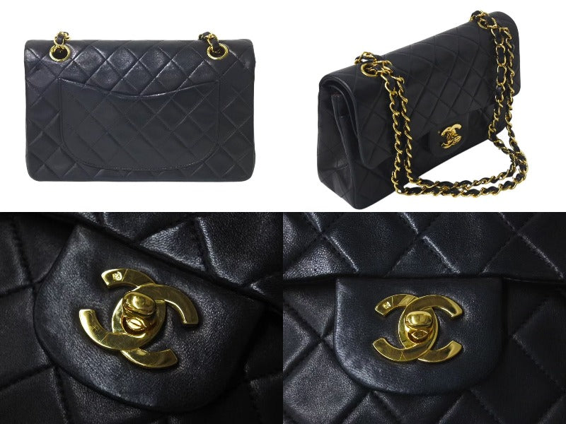 CHANEL シャネル マトラッセ23 Wフラップ チェーン ショルダーバッグ ラムスキン 2番台 ブラック ゴールド金具 美品 中古 4c072975