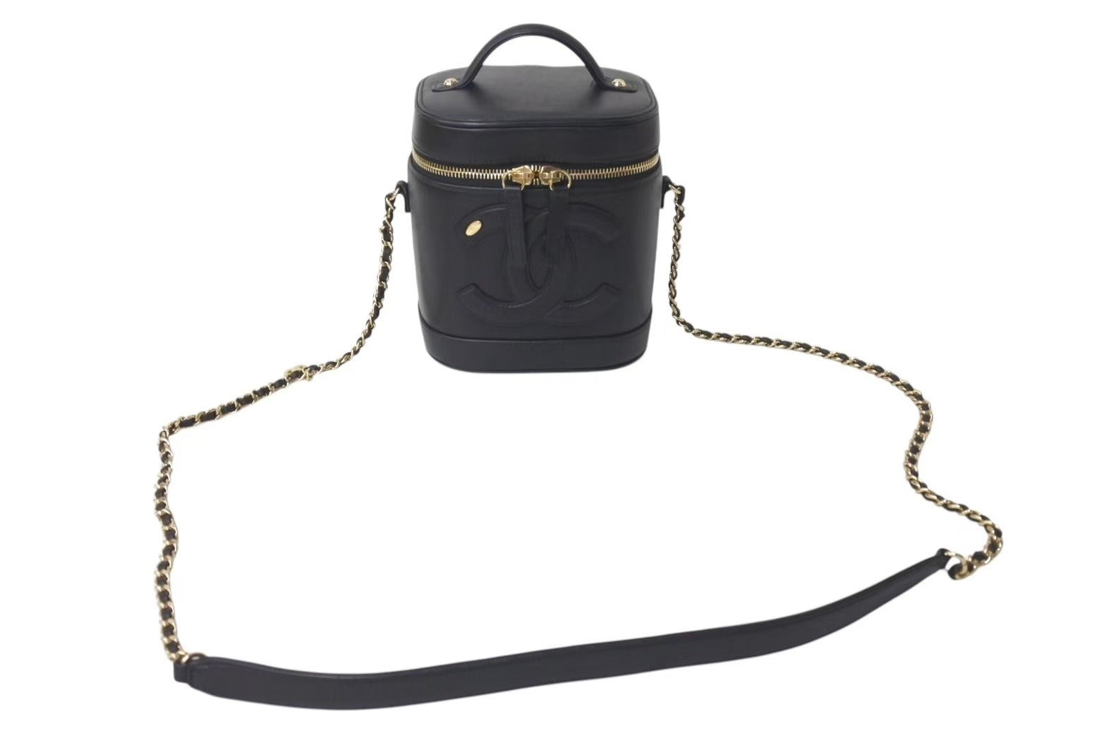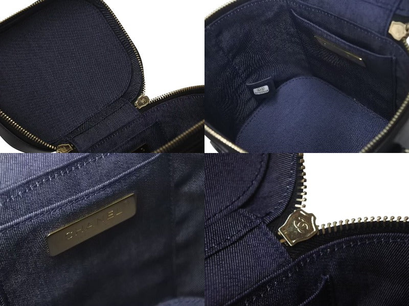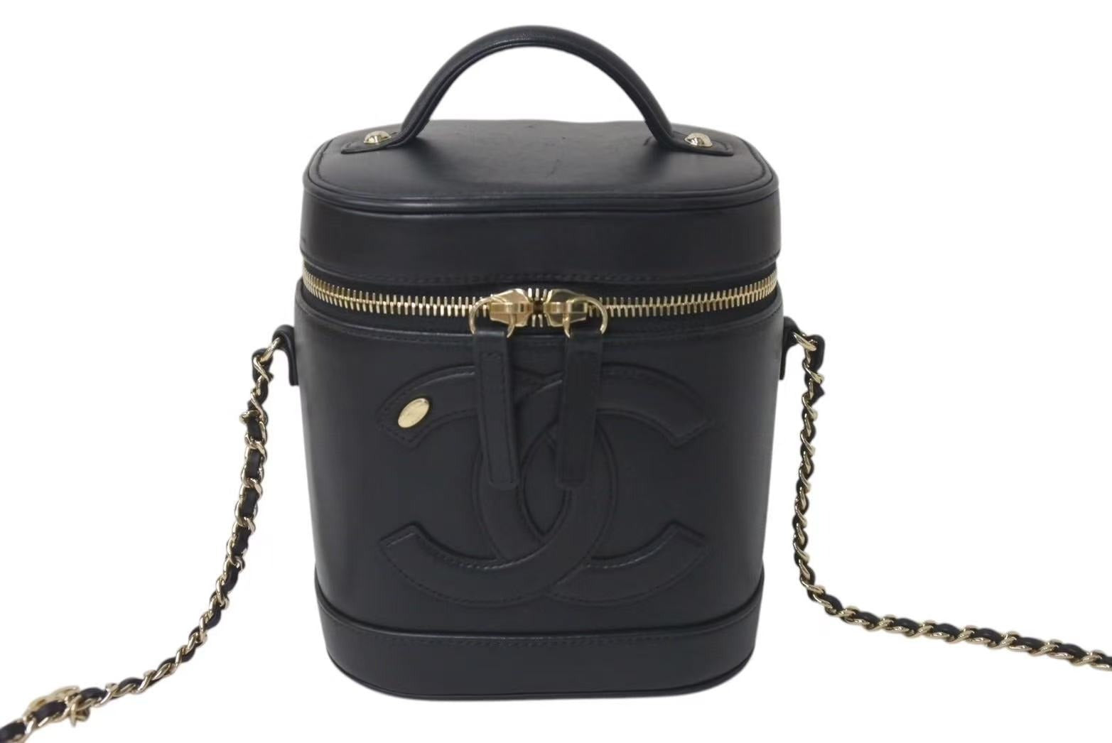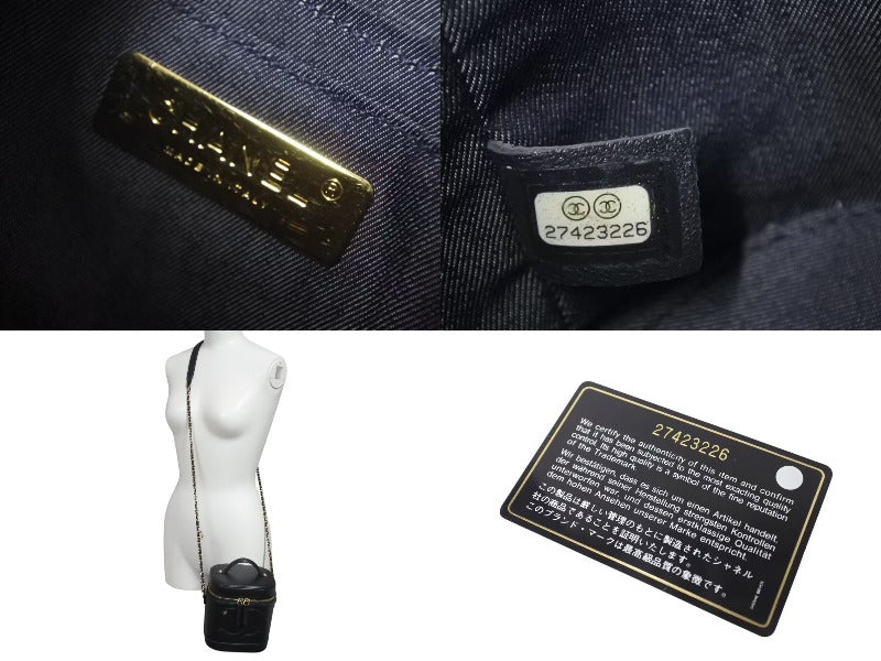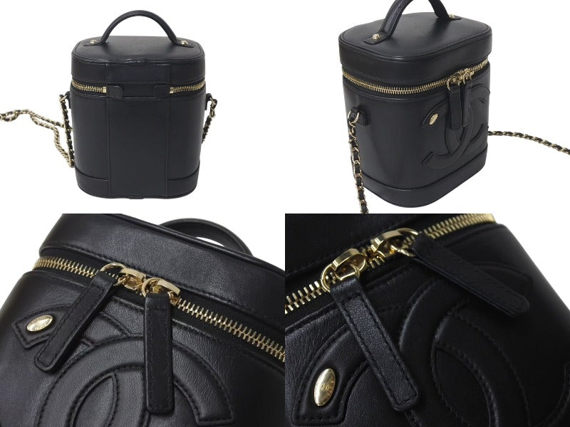 CHANEL シャネル 縦型 バニティ チェーンショルダーバッグ ココマーク ラムスキン ブラック ゴールド金具 美品 中古 4c073081