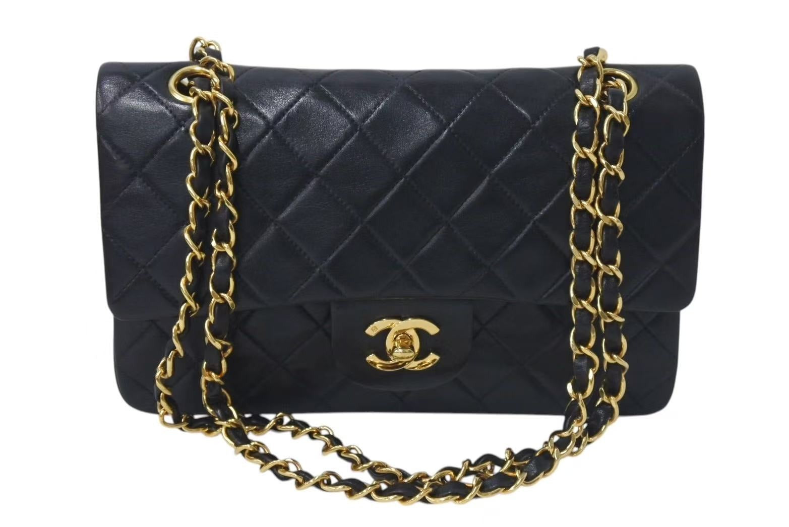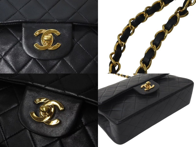 極美品 CHANEL シャネル マトラッセ23 Wフラップ チェーン ショルダーバッグ ラムスキン2番台 ブラック ゴールド金具 中古 4c073340