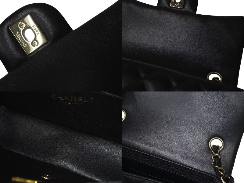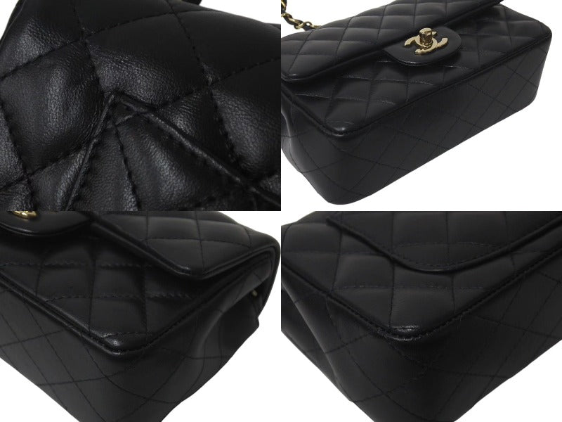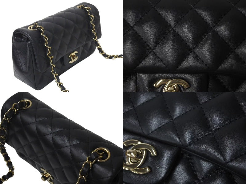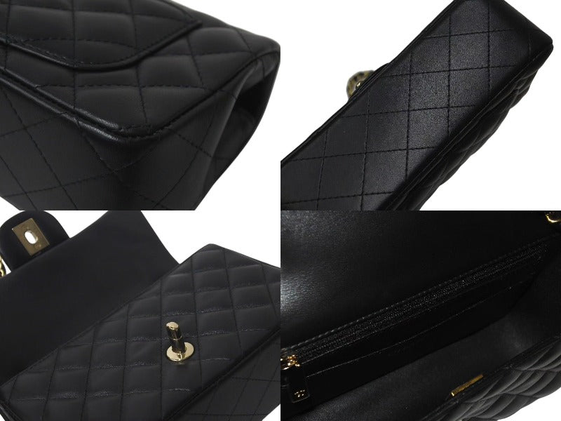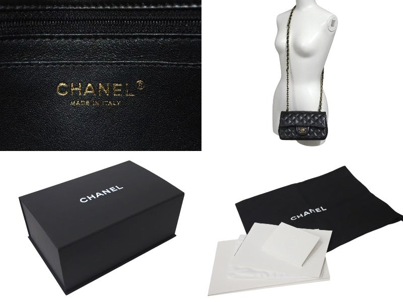 極美品 CHANEL シャネル 横長 20cm ショルダーバッグ ランダム番台 ミニマトラッセショルダーチェーン ブラック ラムスキン 中古 4c073376