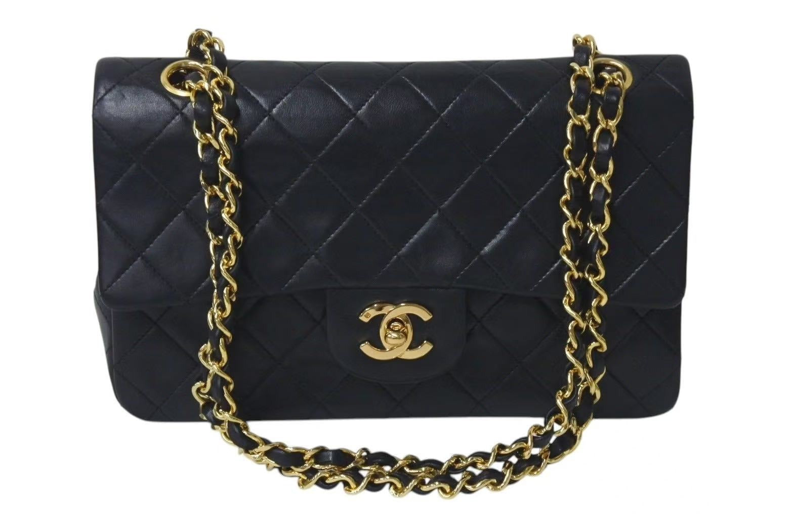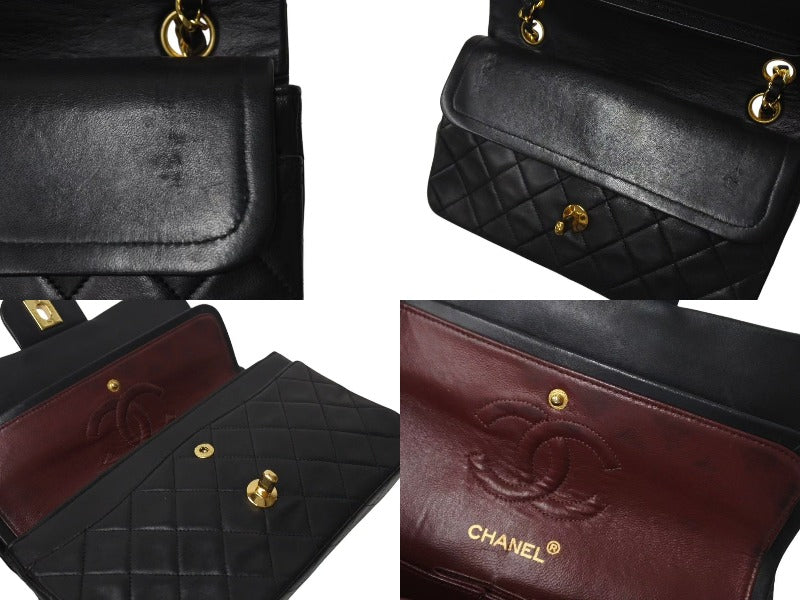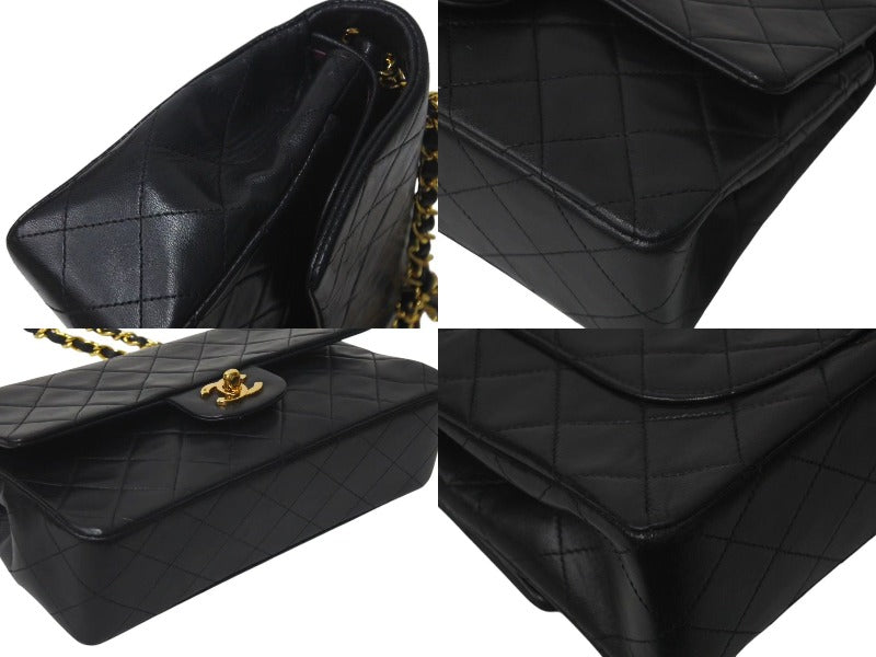 極美品 CHANEL シャネル マトラッセ23 Wフラップ チェーン ショルダーバッグ ラムスキン1番台 ブラック ゴールド金具 中古 4c073393