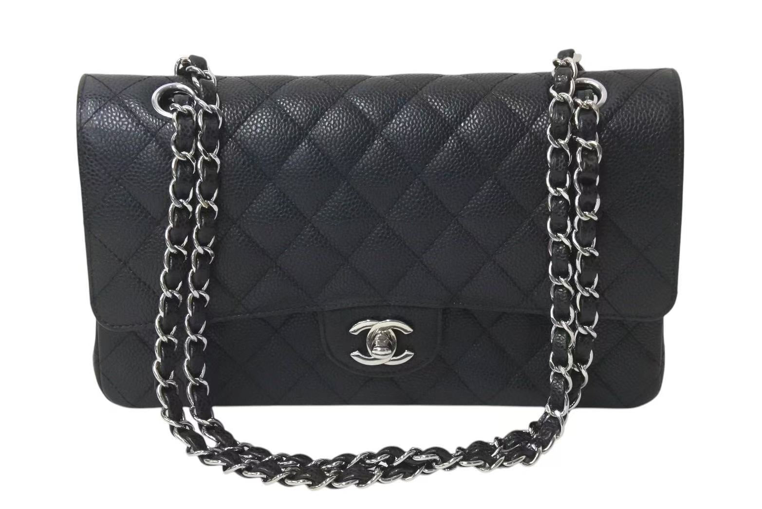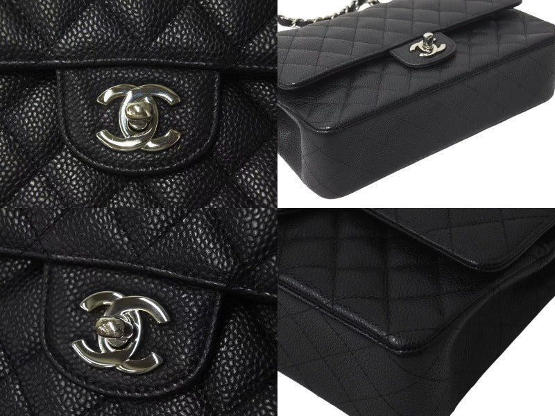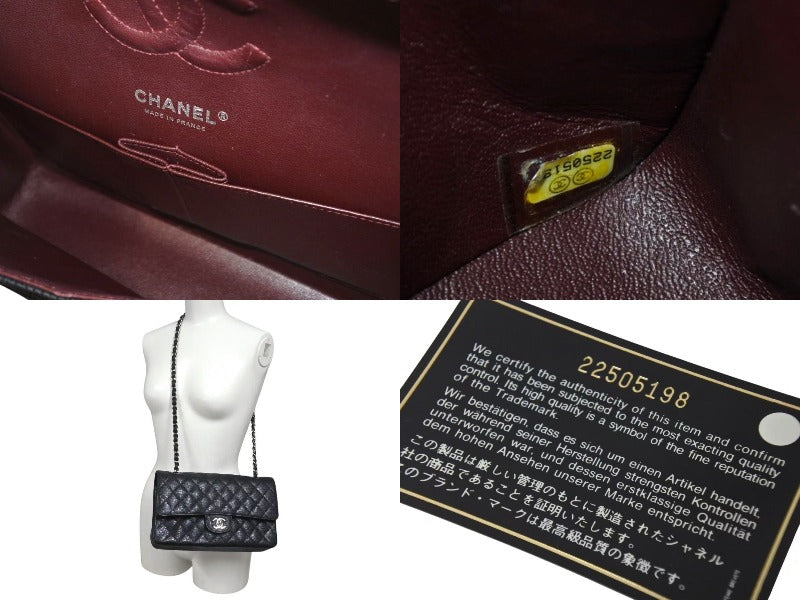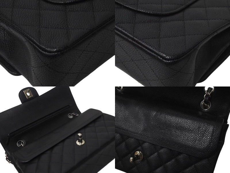 極美品 CHANEL シャネル ショルダーバッグ マトラッセ25 キャビアスキン ダブルフラップ ブラック シルバー金具 22番台 A01112 中古 4c073527