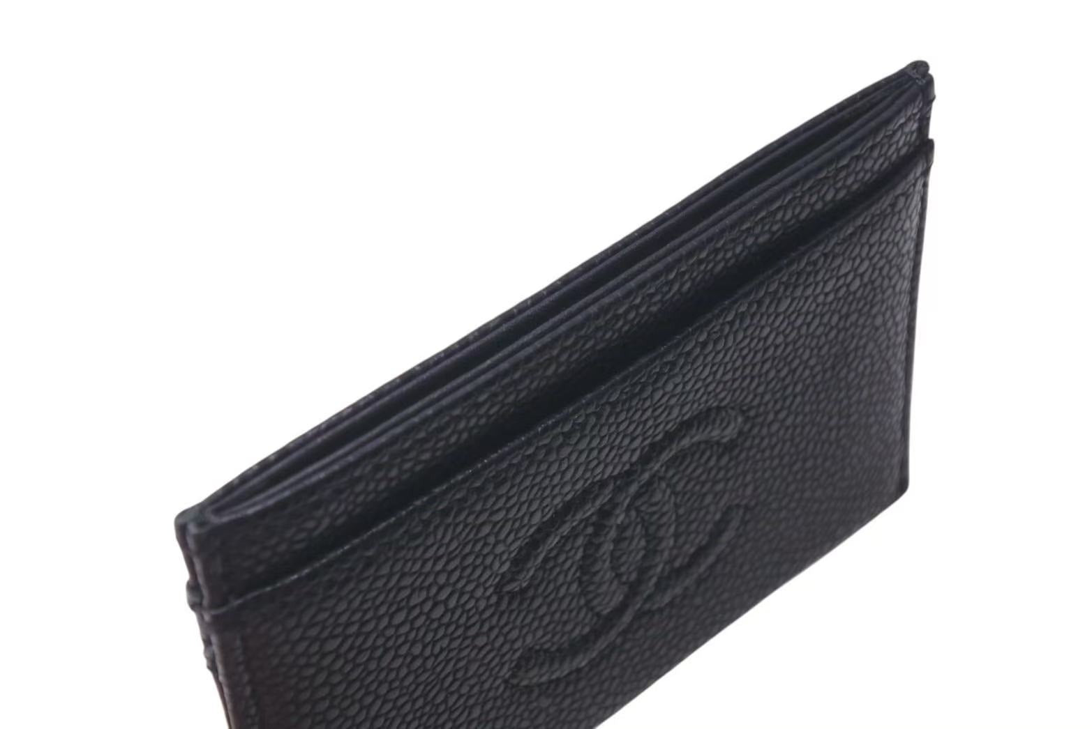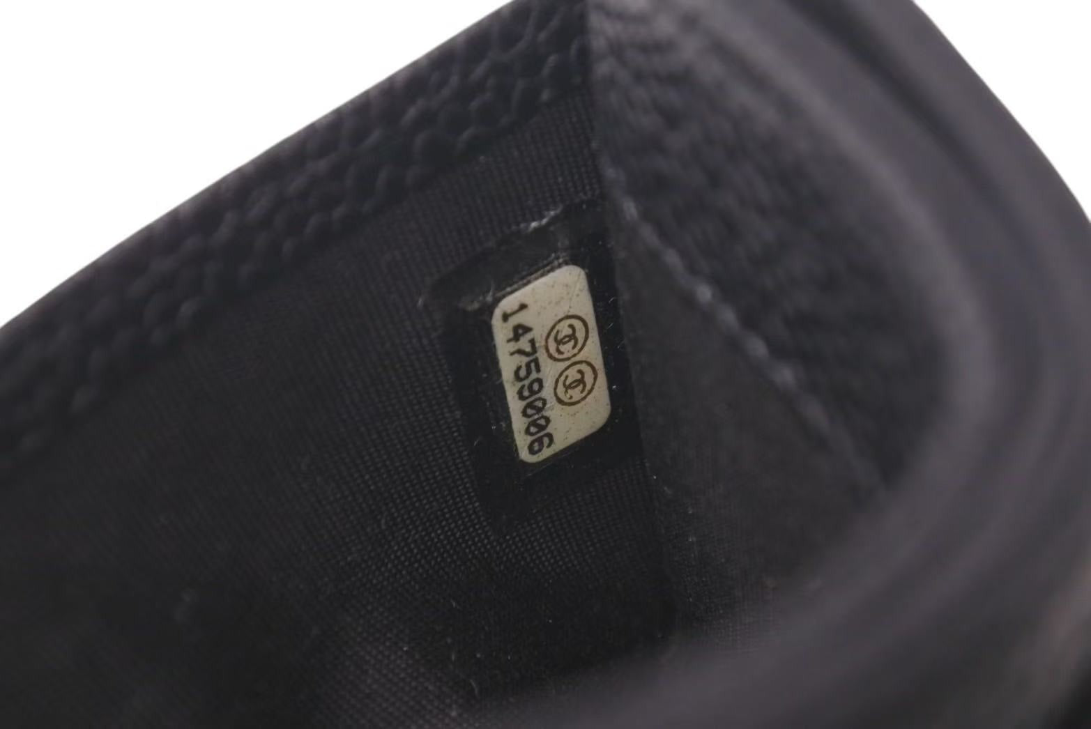 新品同様 CHANEL シャネル カードケース 名刺入れ 14番台 ココマーク イタリア製 キャビアスキン ブラック 中古 4c073547