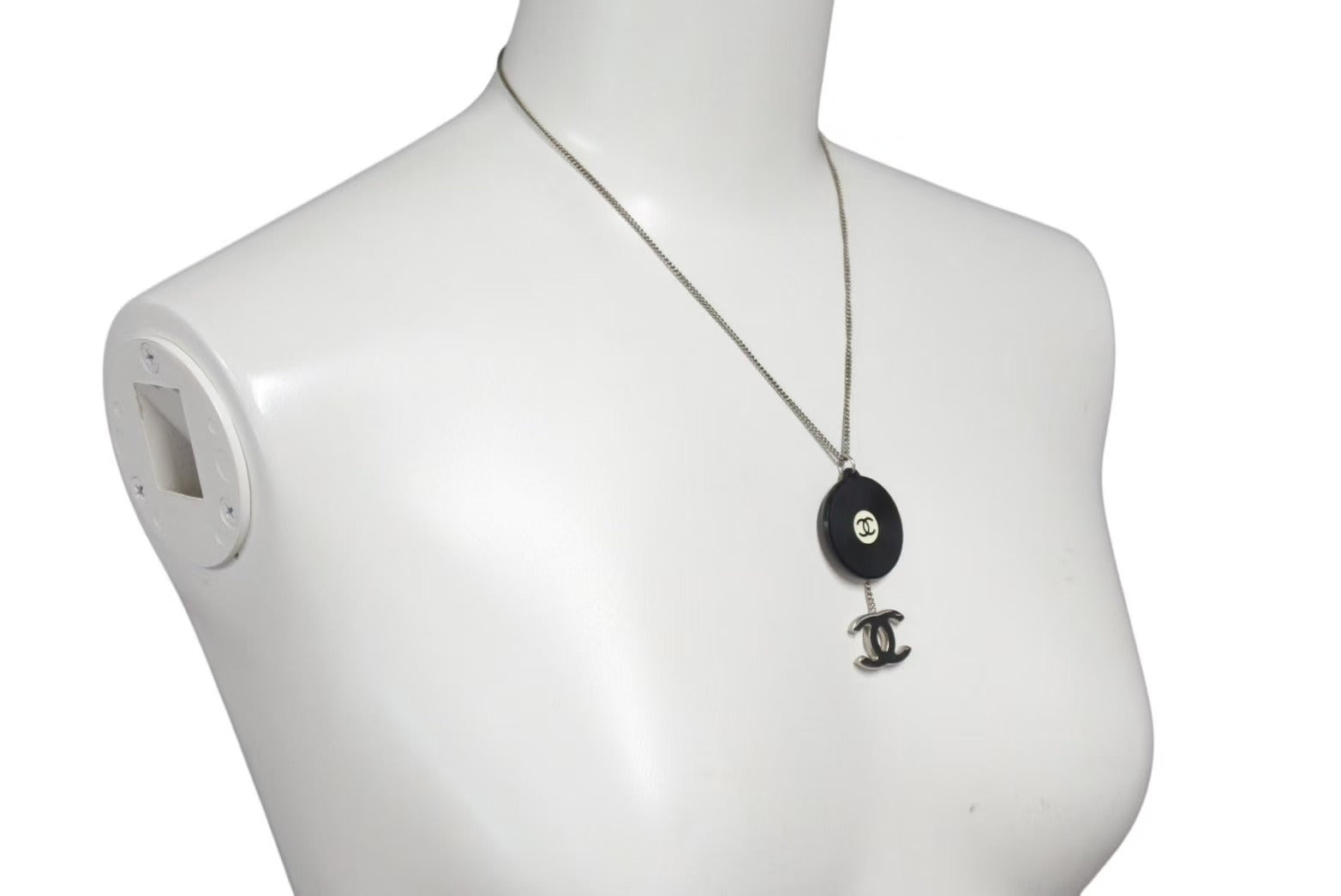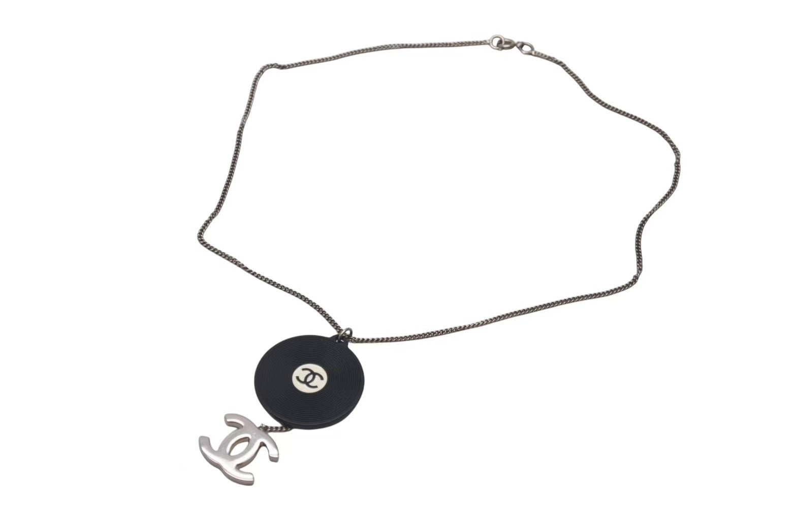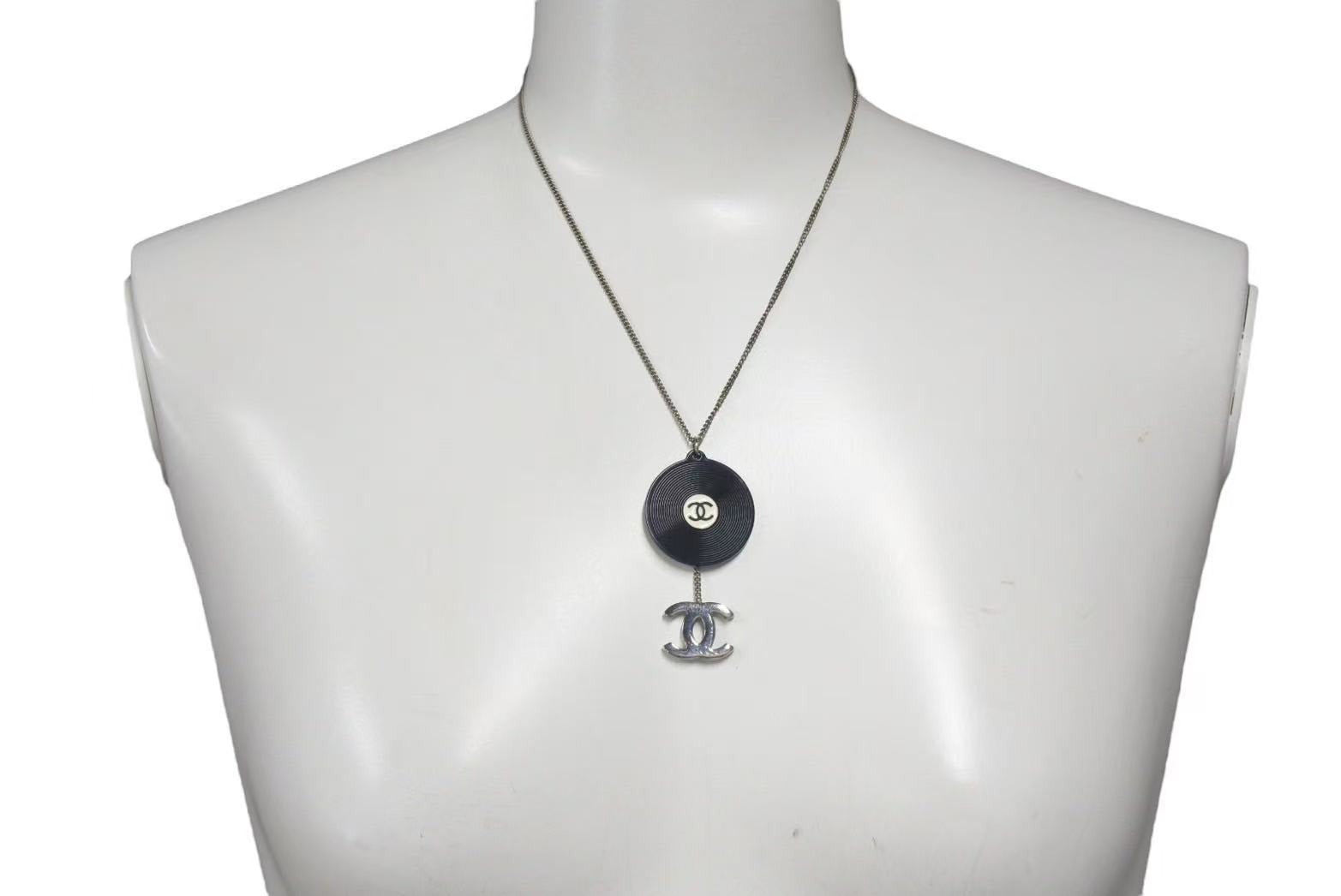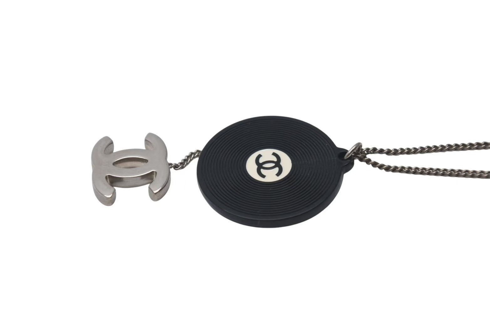 CHANEL シャネル レコード ネックレス ココマーク アクセサリー 04P刻印 イタリア製 10.1g シルバー ブラック ホワイト 美品 中古 4c073771
