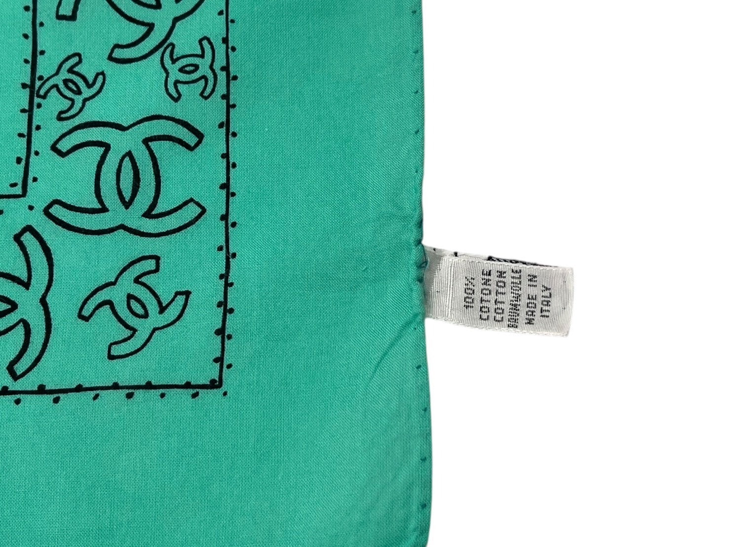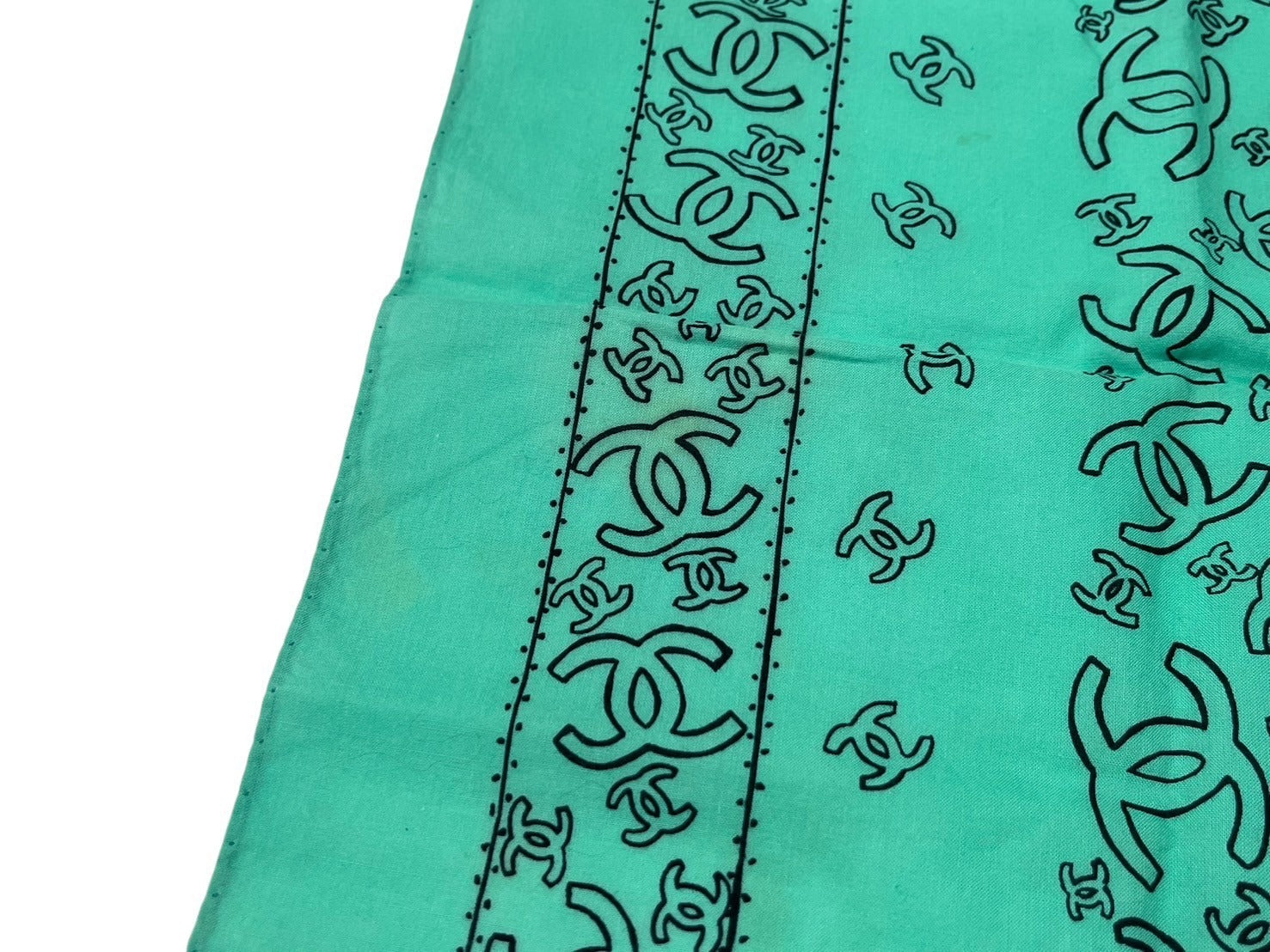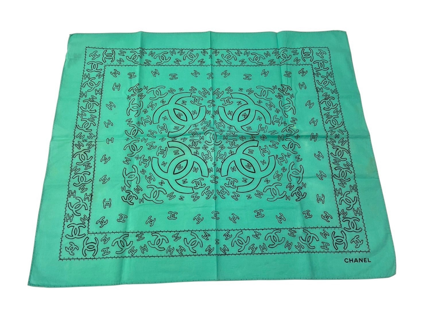 CHANEL シャネル スカーフ バンダナ柄 ココマーク ペイズリー ハンカチ グリーン コットン 良品 中古 4c074276
