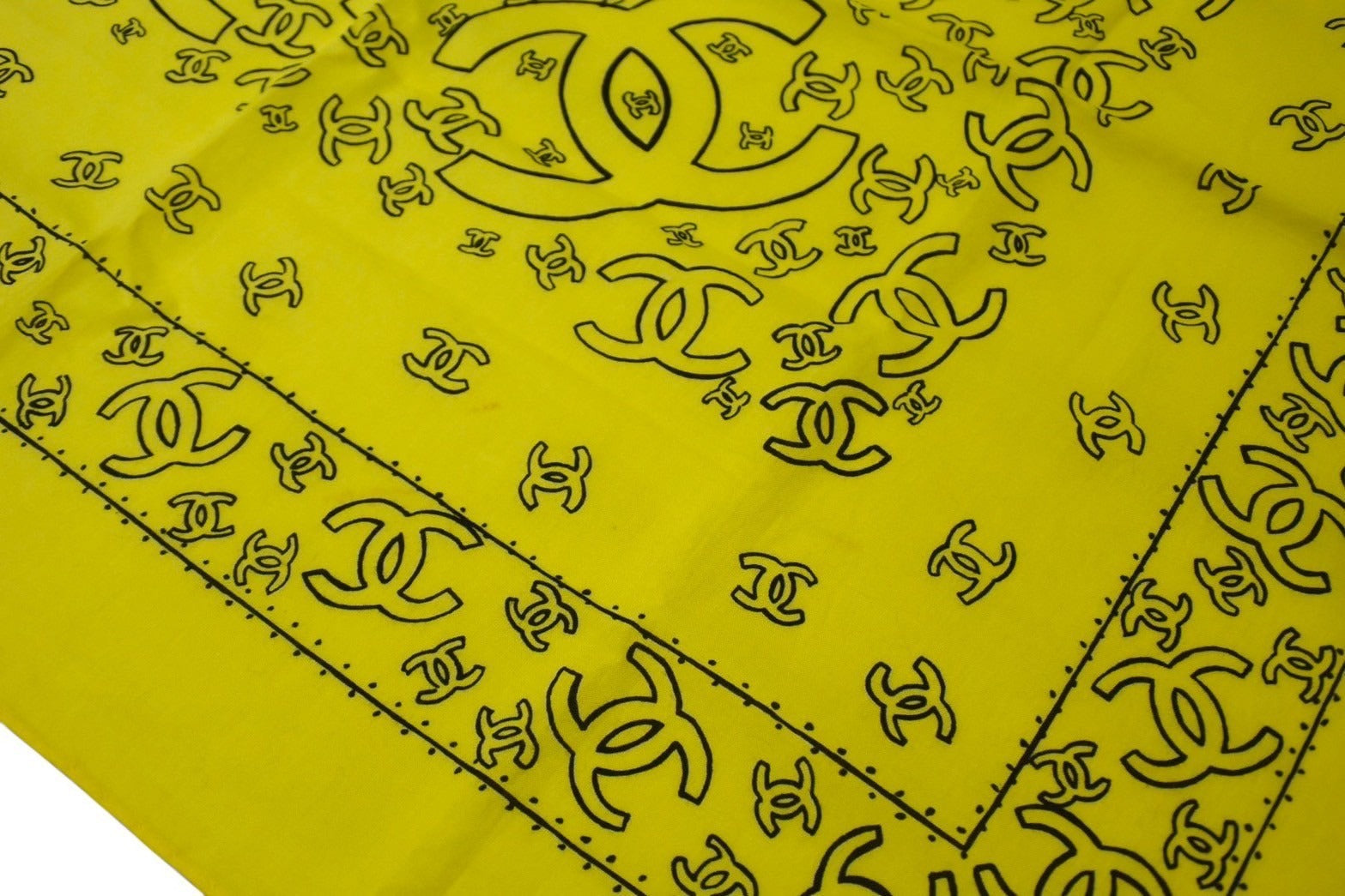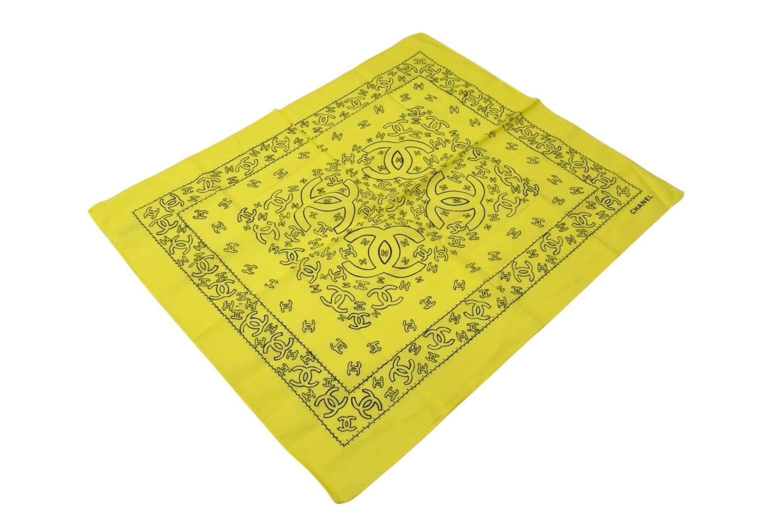 CHANEL シャネル スカーフ バンダナ柄 ココマーク ペイズリー ハンカチ 92年製 イエロー コットン 美品 中古 4c074270