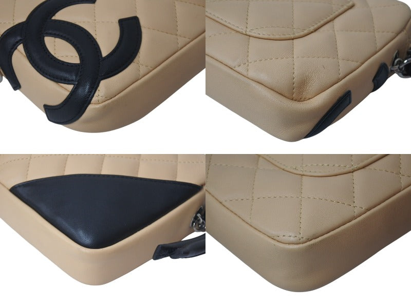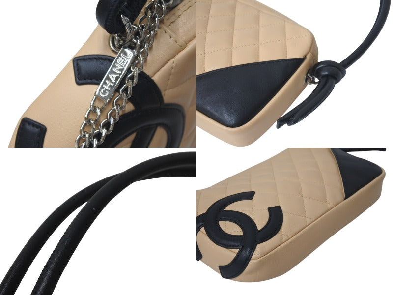 極美品 CHANEL シャネル ポーチ ハンドバッグ カンボンライン ココマーク 9番台 ラムスキン ベージュ ブラック 中古 4c074402