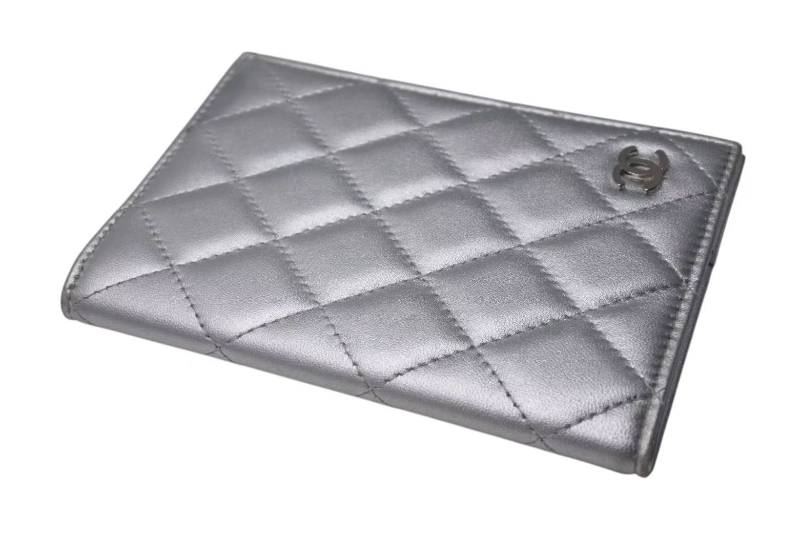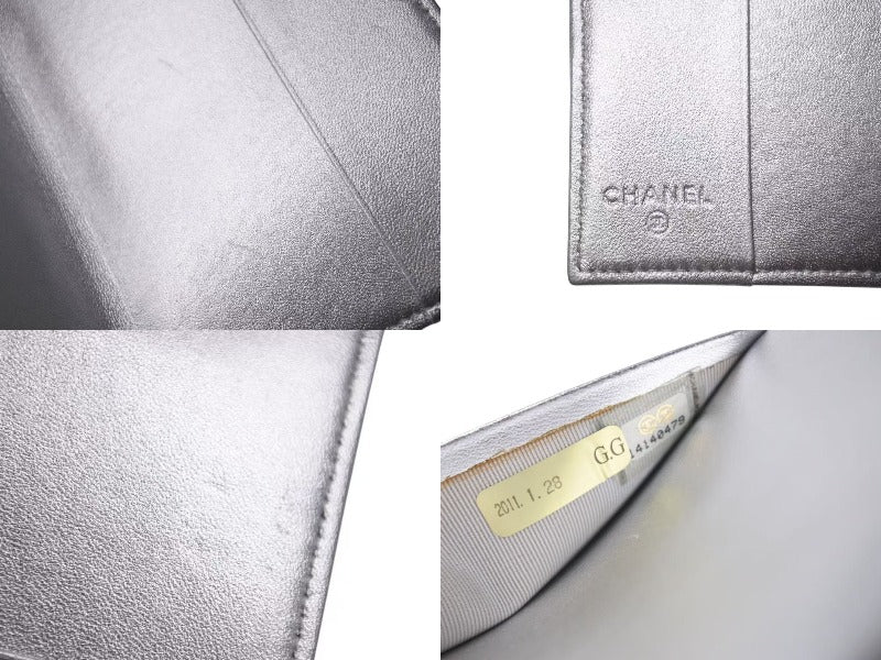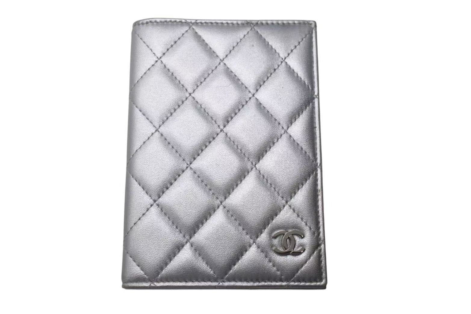 CHANEL シャネル Metallic Passport Holder メタリック パスポート ホルダー シルバー 14番台 美品 中古 4c074493