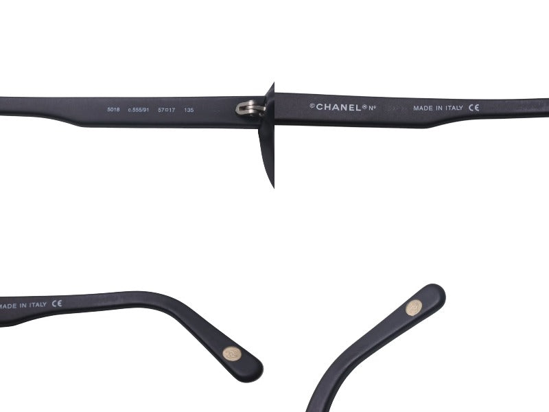 新品同様 CHANEL シャネル サングラス 5018 c.555/91 サイズ57□17 135 ココマーク ブラック プラスチック イタリア製 中古 4c075121