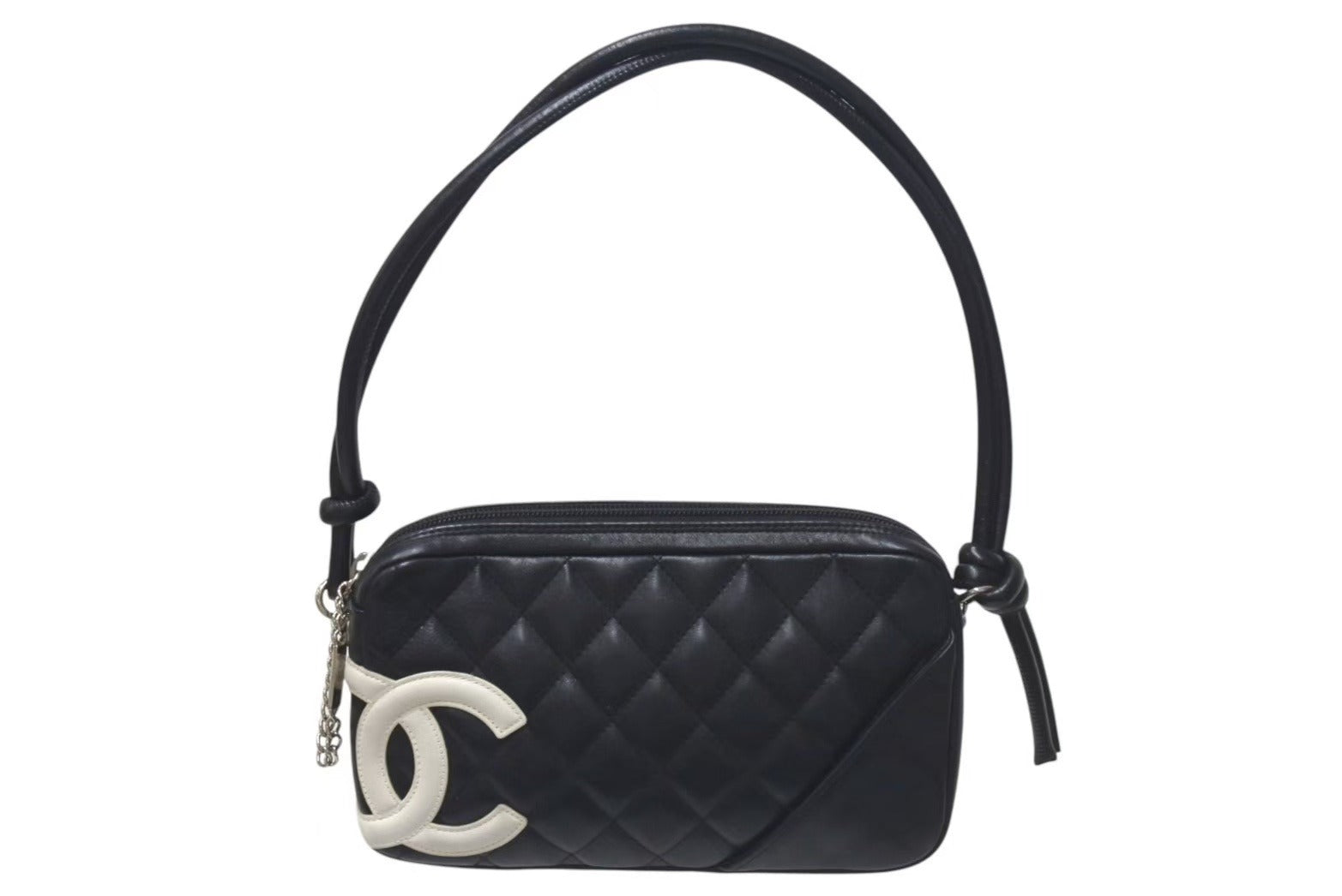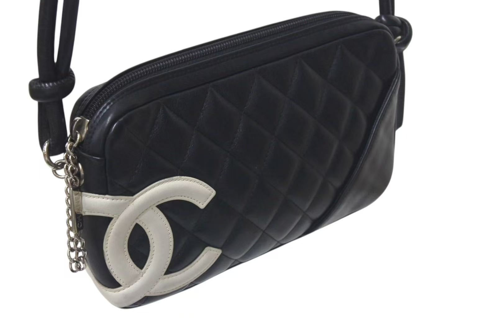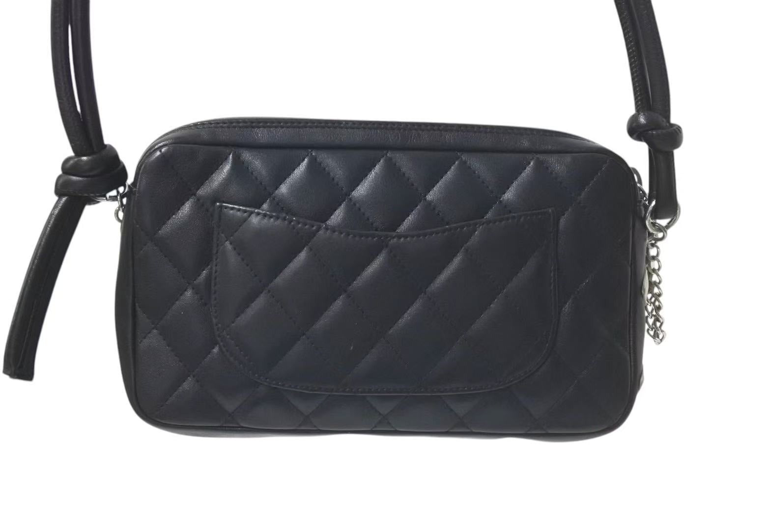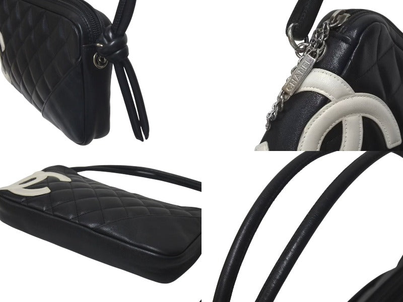 CHANEL シャネル カンボンライン ワンショルダーバッグ ココマーク 9番台 カーフスキン ブラック シルバー 金具 美品 中古 4c075218