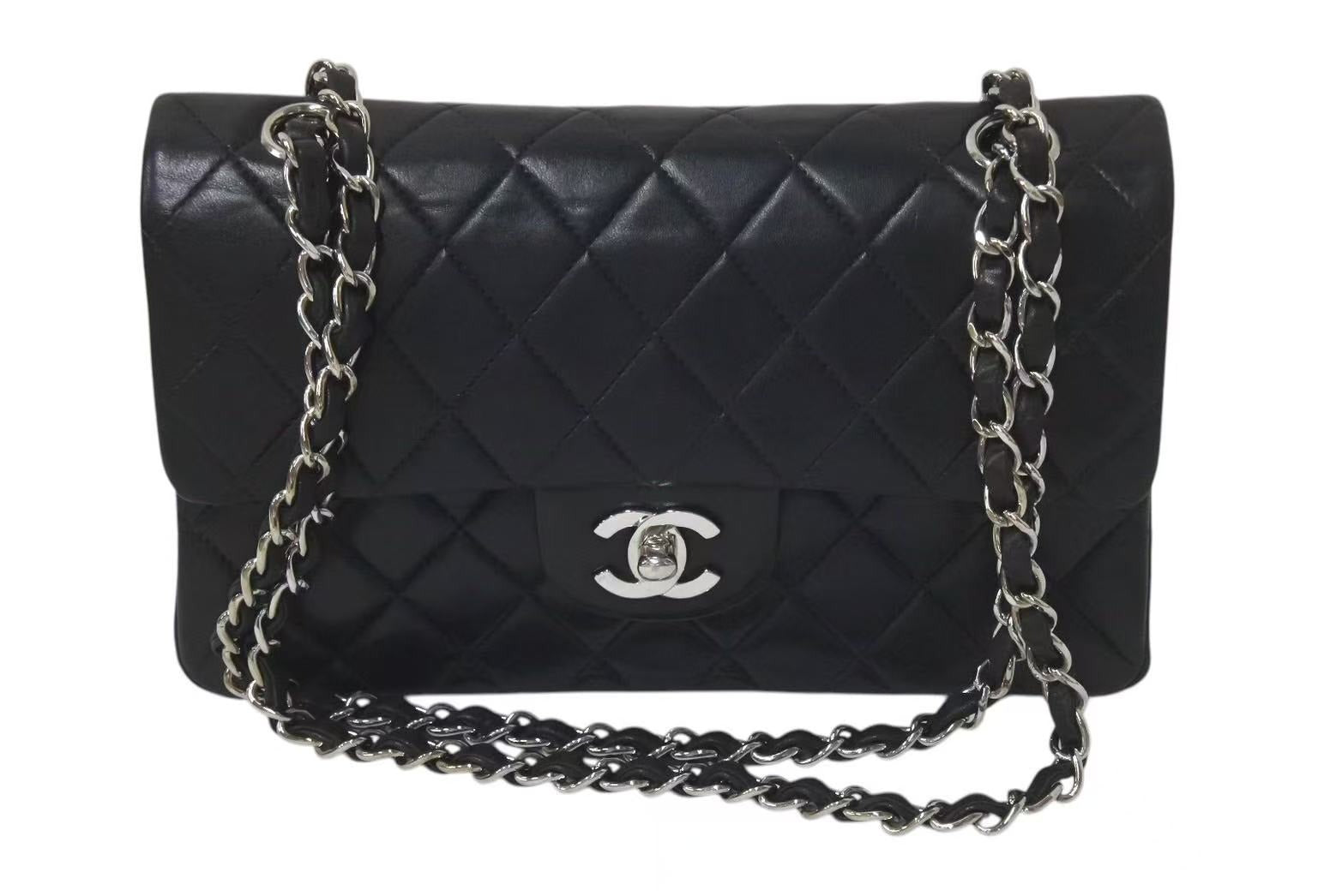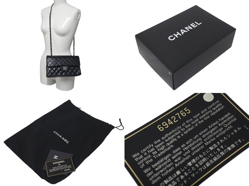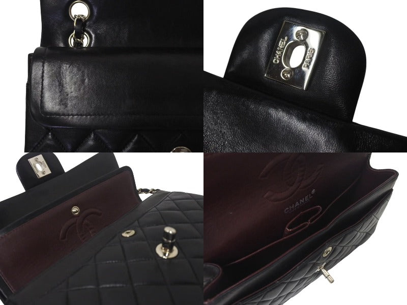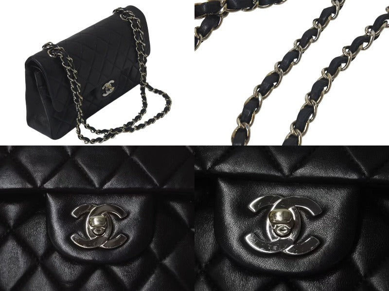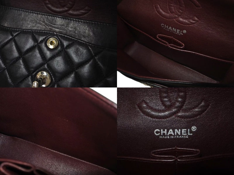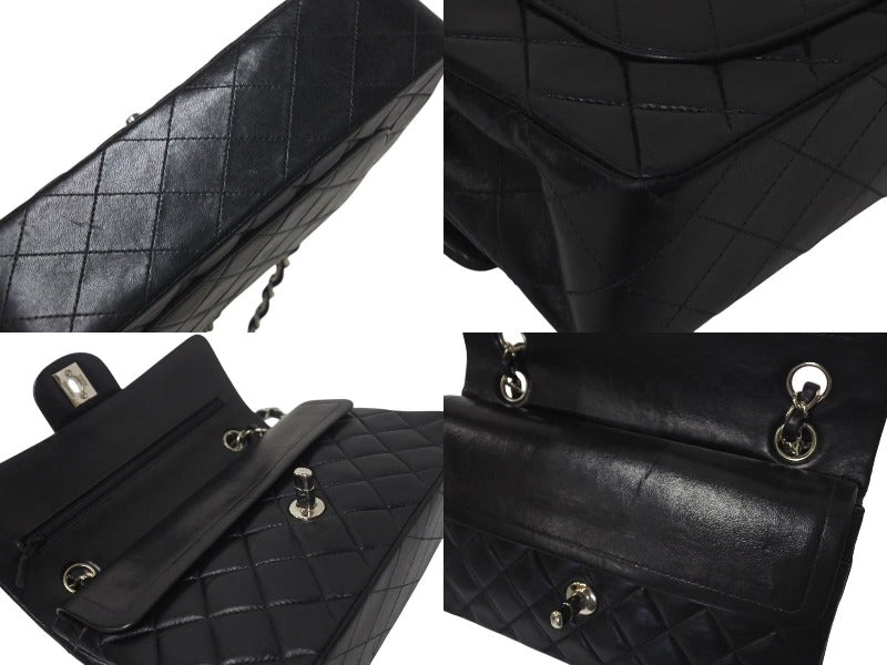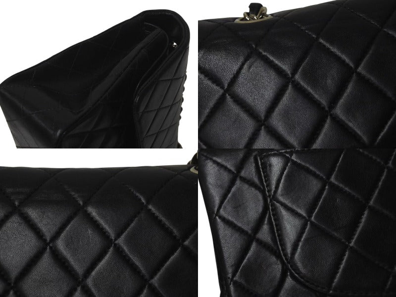 CHANEL シャネル マトラッセ 23cm Wチェーンショルダーバッグ Wフラップ 6番台 ラムスキン ココマーク ブラック 美品 中古 4c075396