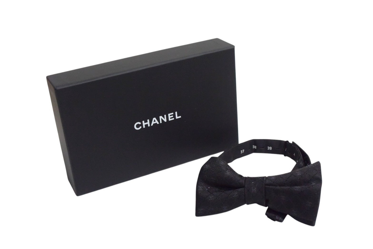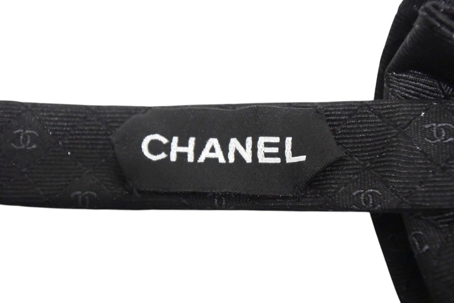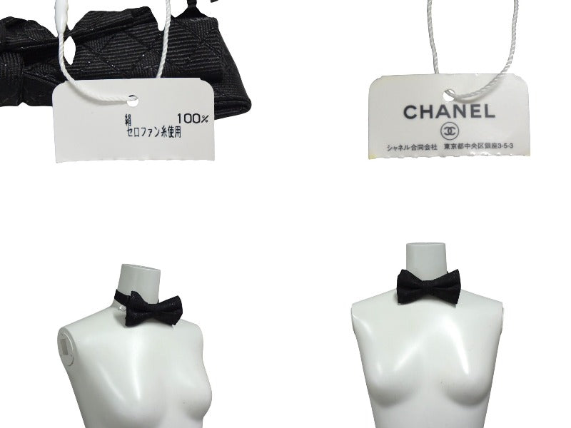 新品未使用 CHANEL シャネル 蝶ネクタイ リボンタイ チョーカー ココマーク キルティングデザイン シルク ブラック 中古 4c075580