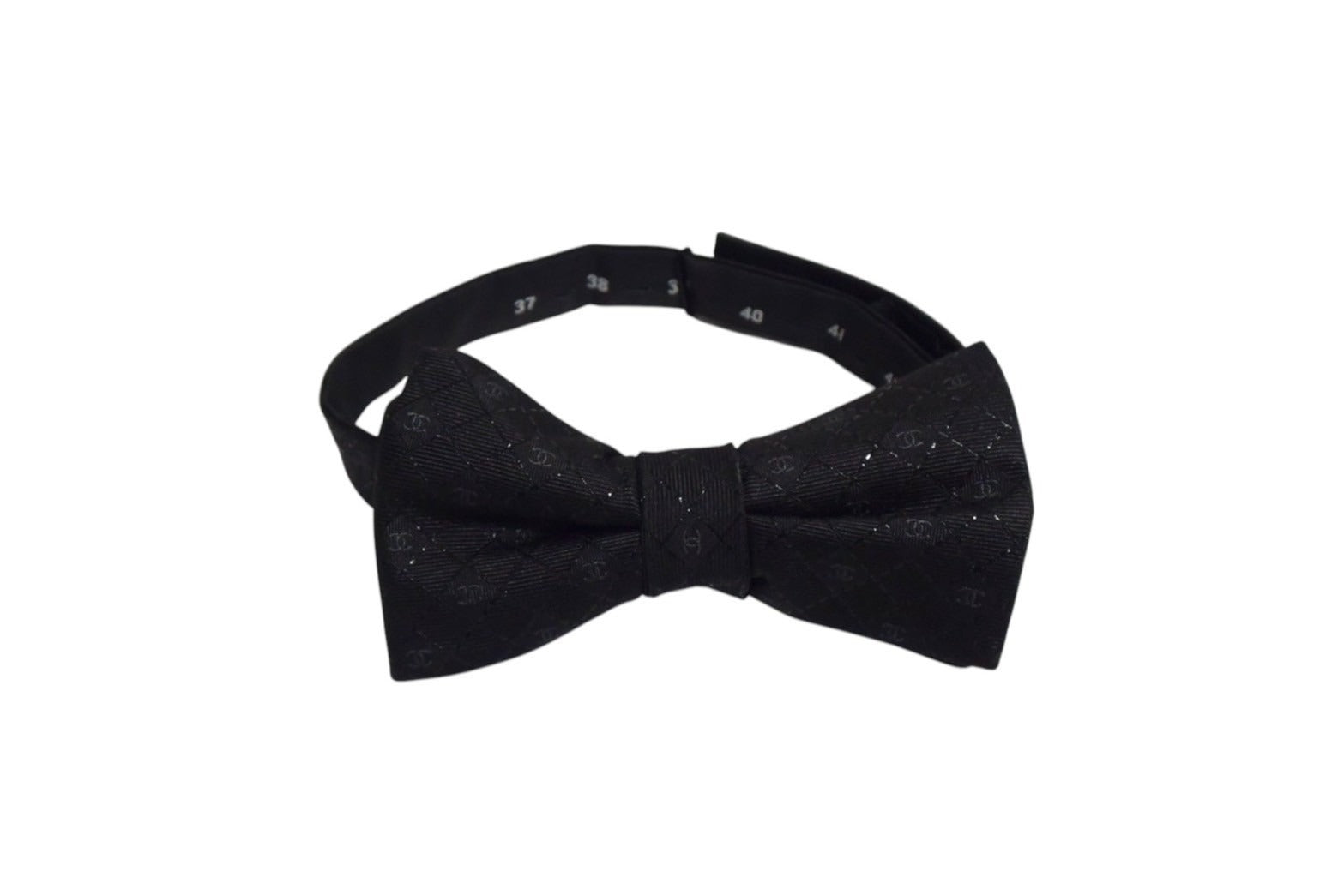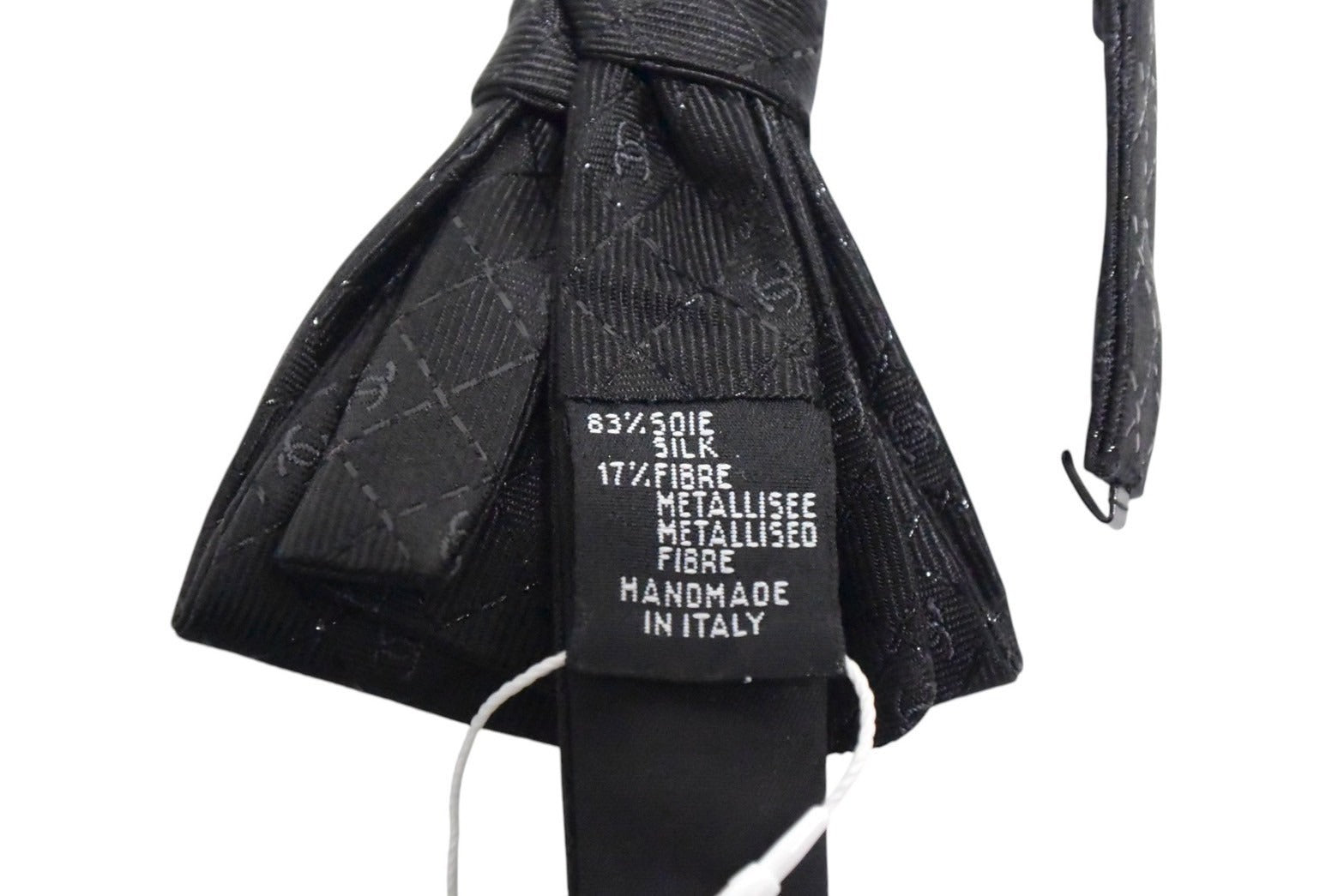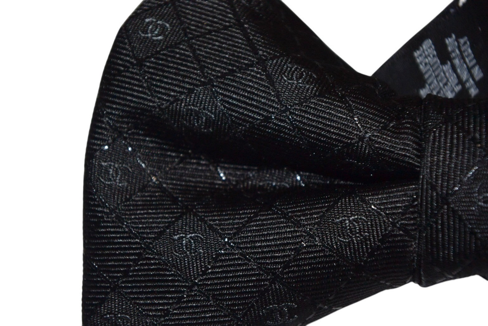 新品未使用 CHANEL シャネル 蝶ネクタイ リボンタイ チョーカー ココマーク キルティングデザイン シルク ブラック 中古 4c075580