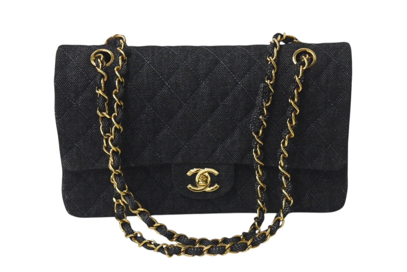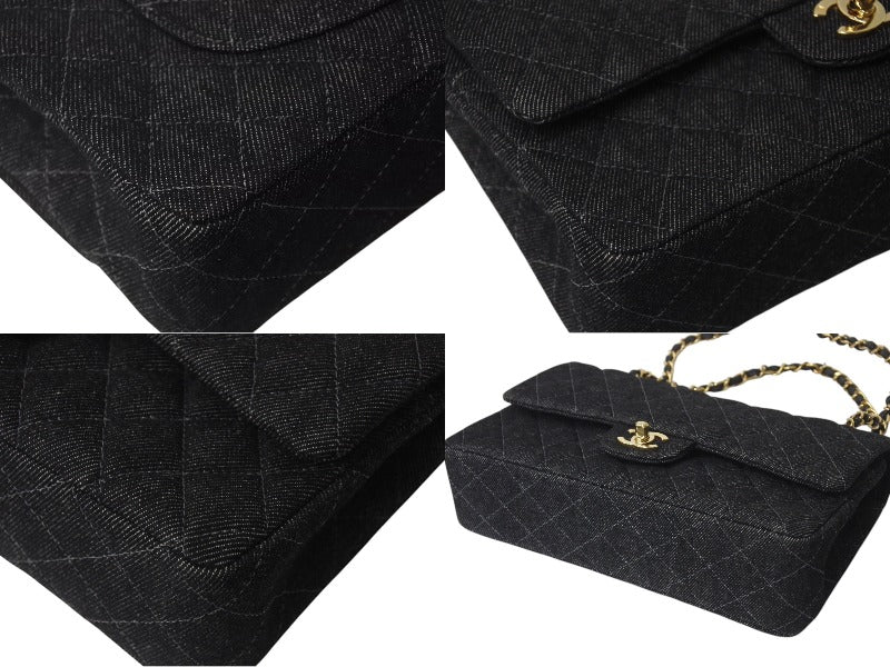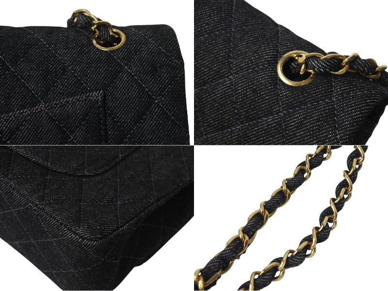 極美品 CHANEL シャネル チェーンショルダーバッグ マトラッセ25 デニム ブラック ゴールド金具 6番台 中古 4c075676