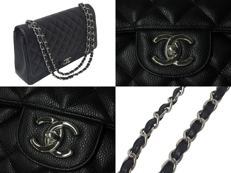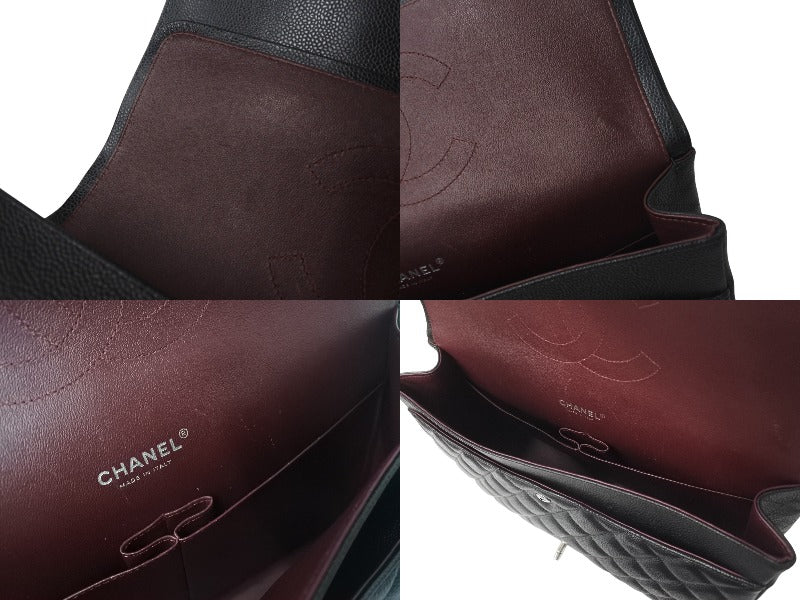 極美品 CHANEL シャネル マトラッセ33 Wフラップ Wチェーン ショルダーバッグ 15番台 キャビアスキン ブラック シルバー金具 中古 4c075851