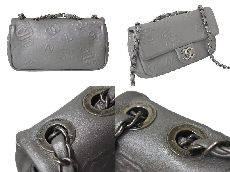 CHANEL シャネル チェーンショルダーバッグ 型押し 香水モチーフ 19番台 グレー 2014年 ココマーク シルバー金具 美品 中古 4c075852