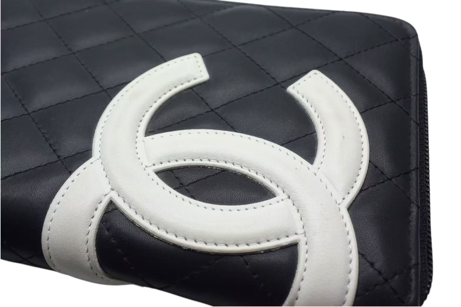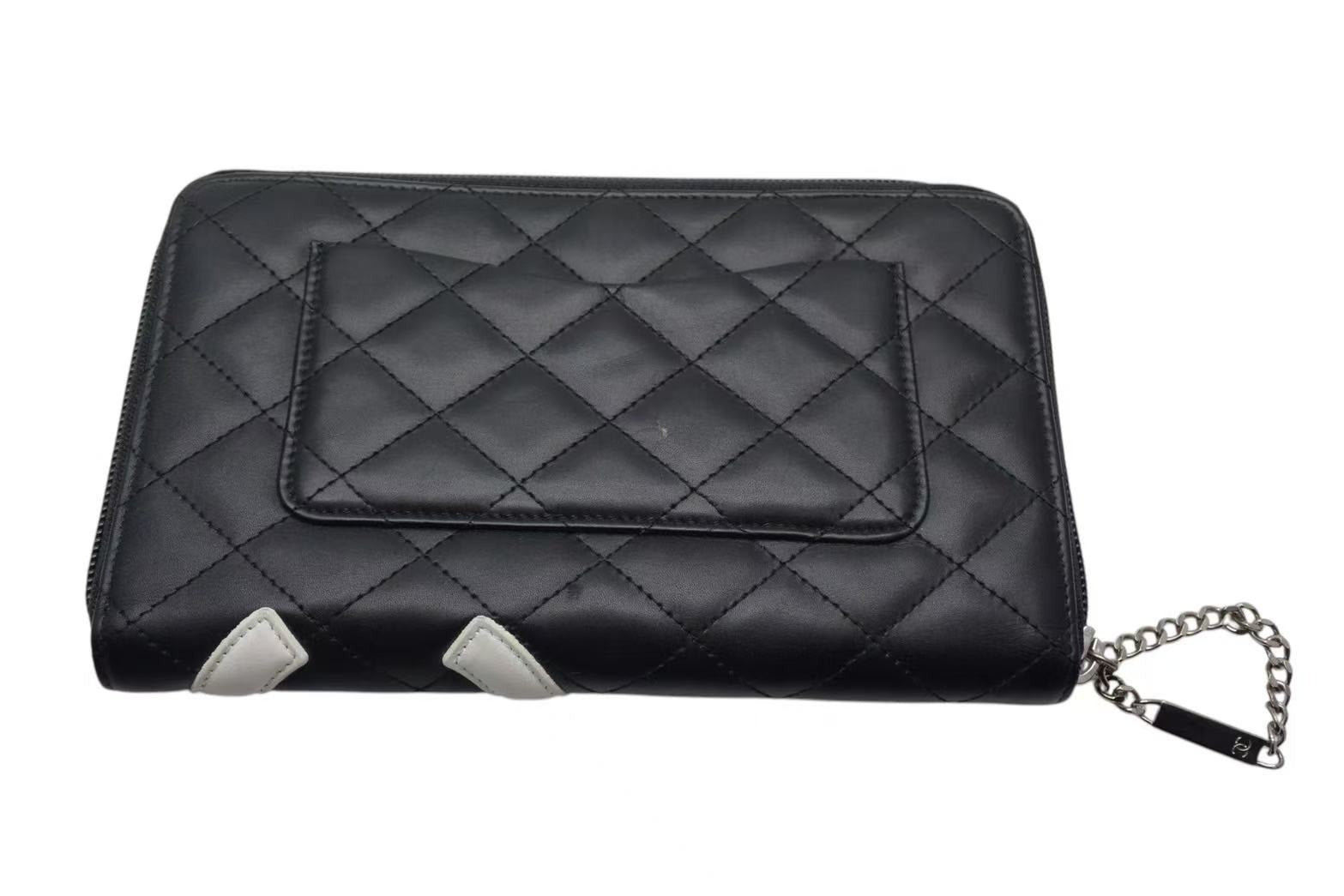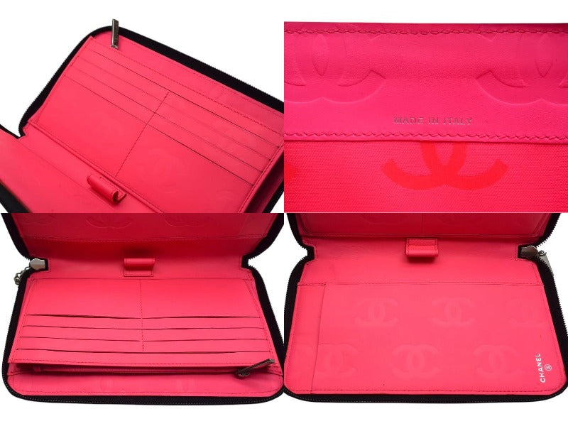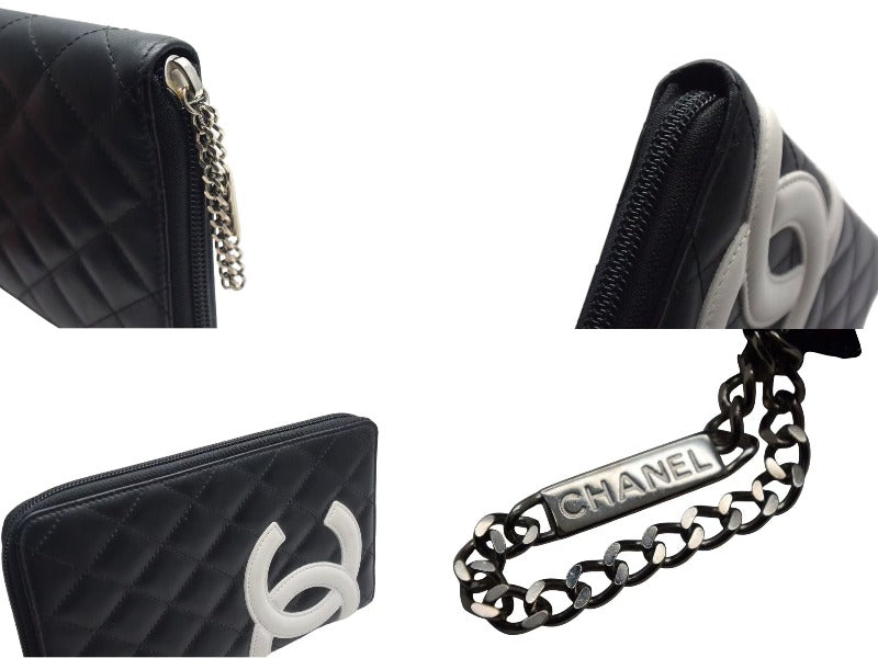 CHANEL シャネル 長財布 カンボンライン オーガナイザー 10番台 ラムスキン ブラック ホワイト ピンク シルバー金具 美品 中古 4c075867