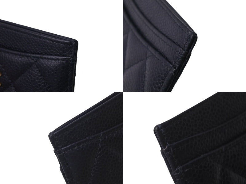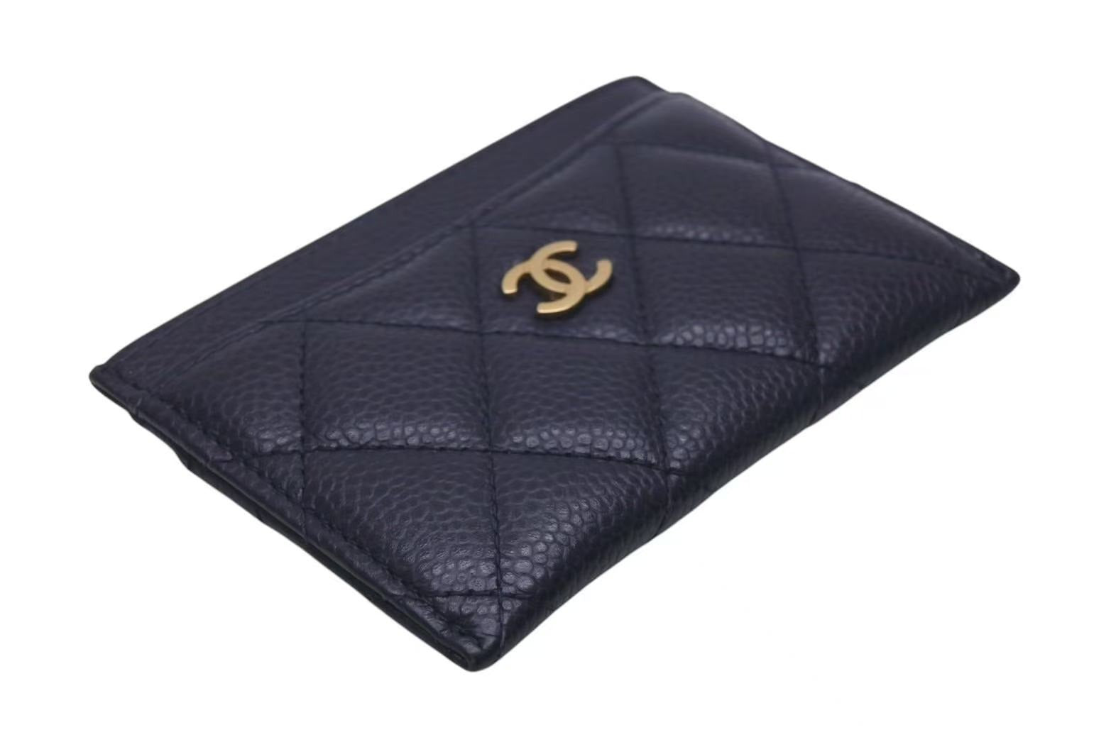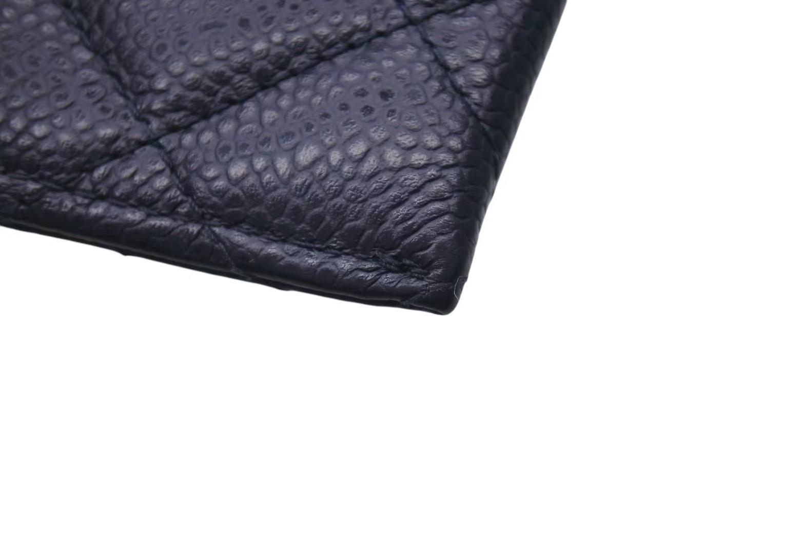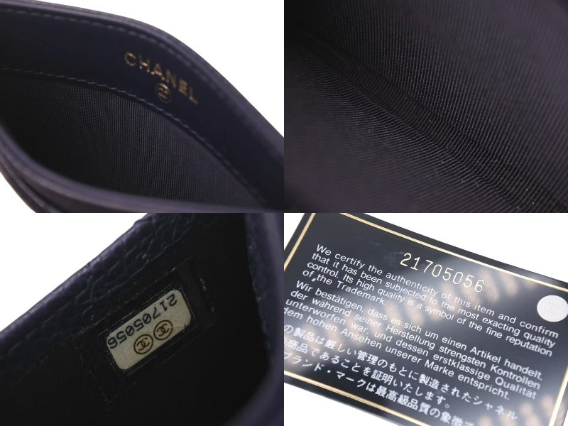 CHANEL シャネル カードケース マトラッセ 21番台 2015年 キャビアスキン ネイビー ゴールド金具 美品 中古 4c076195