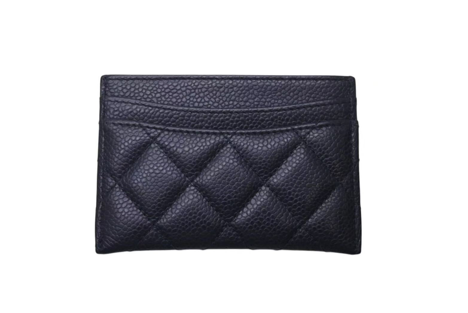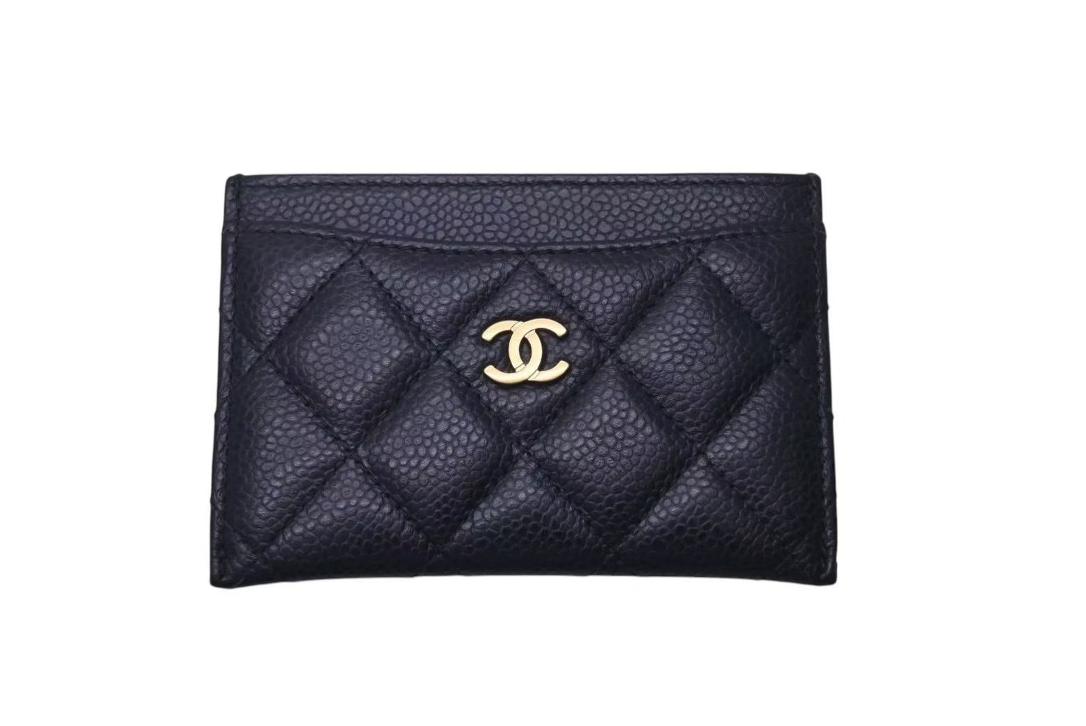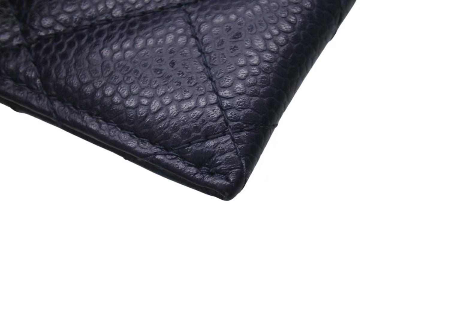 CHANEL シャネル カードケース マトラッセ 21番台 2015年 キャビアスキン ネイビー ゴールド金具 美品 中古 4c076195
