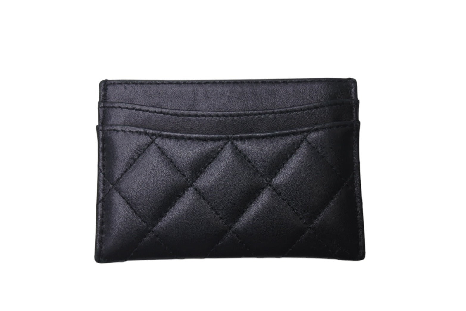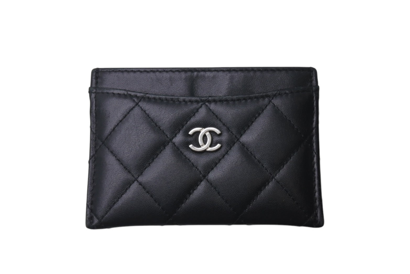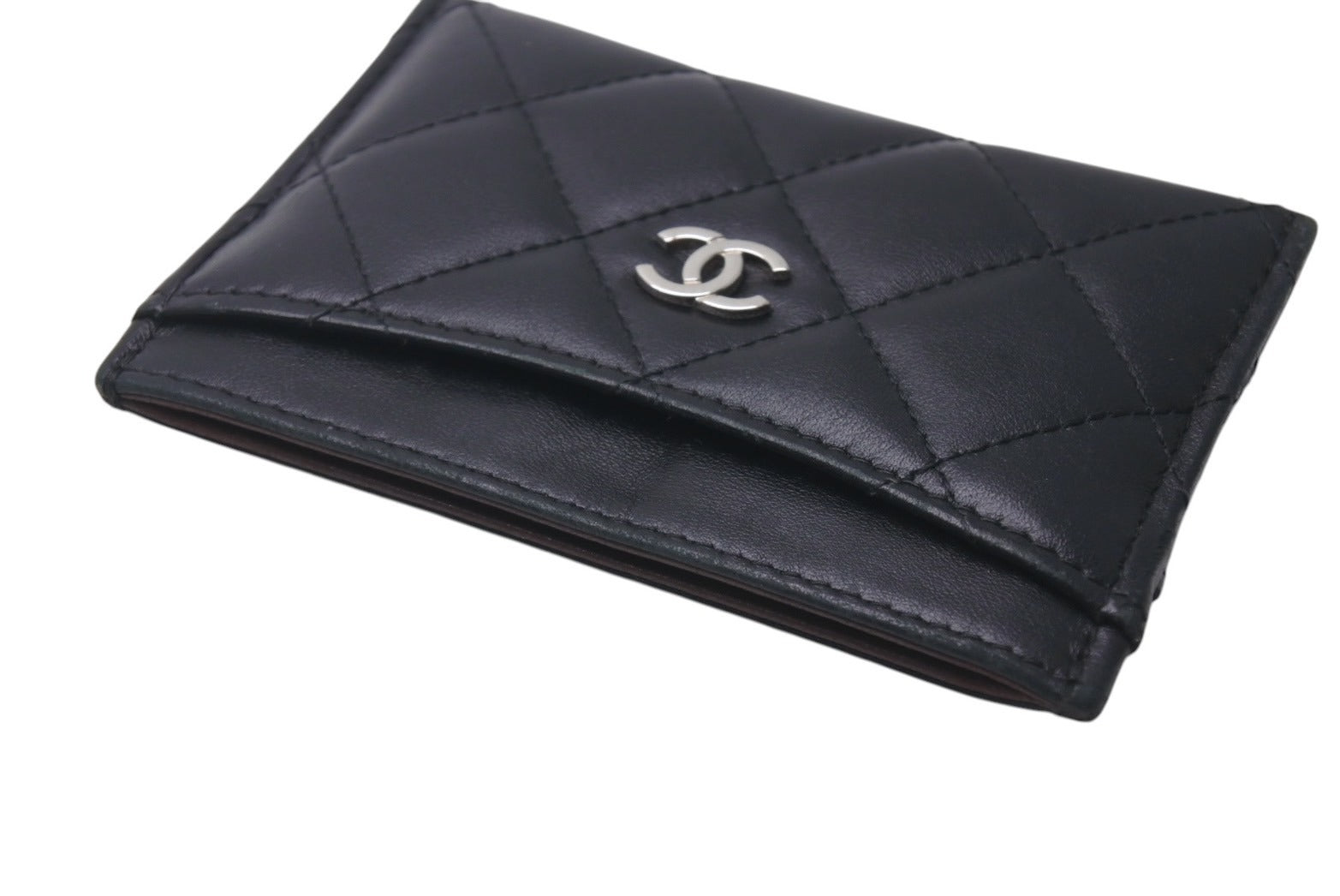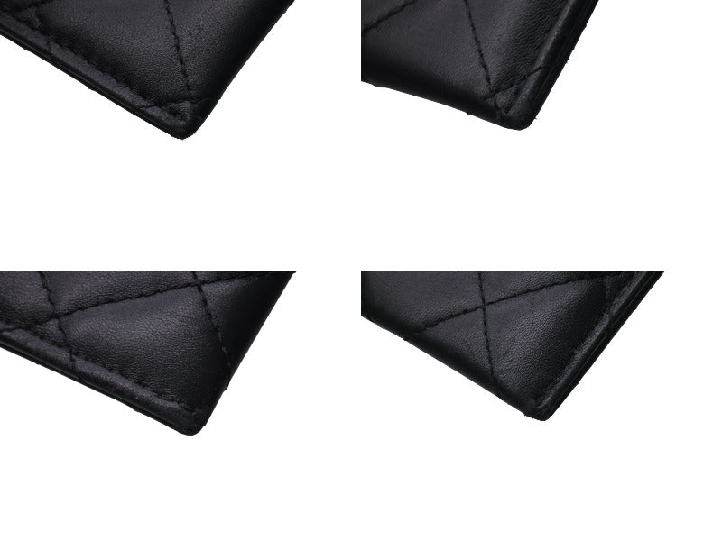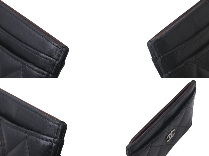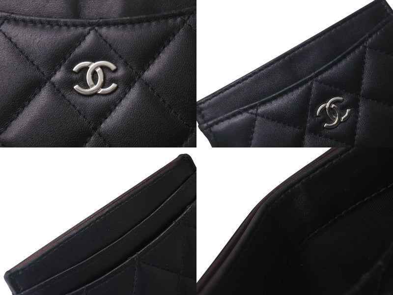 CHANEL シャネル ラムスキン タイムクラシック マトラッセ カードケース ブラック シルバー金具 28番台 美品 中古 4c076221