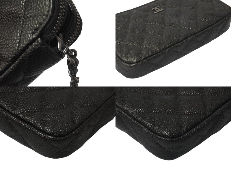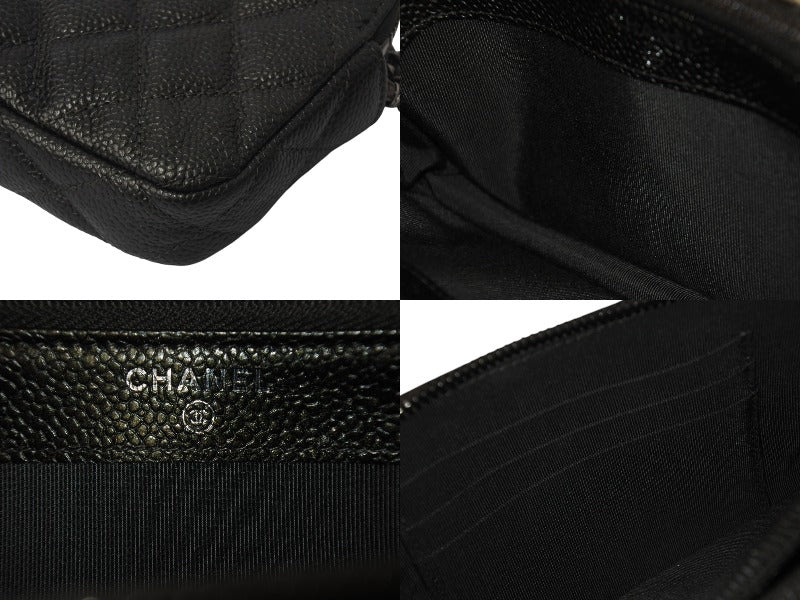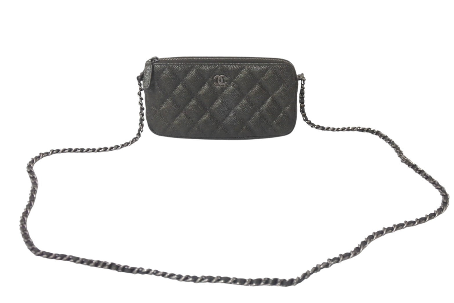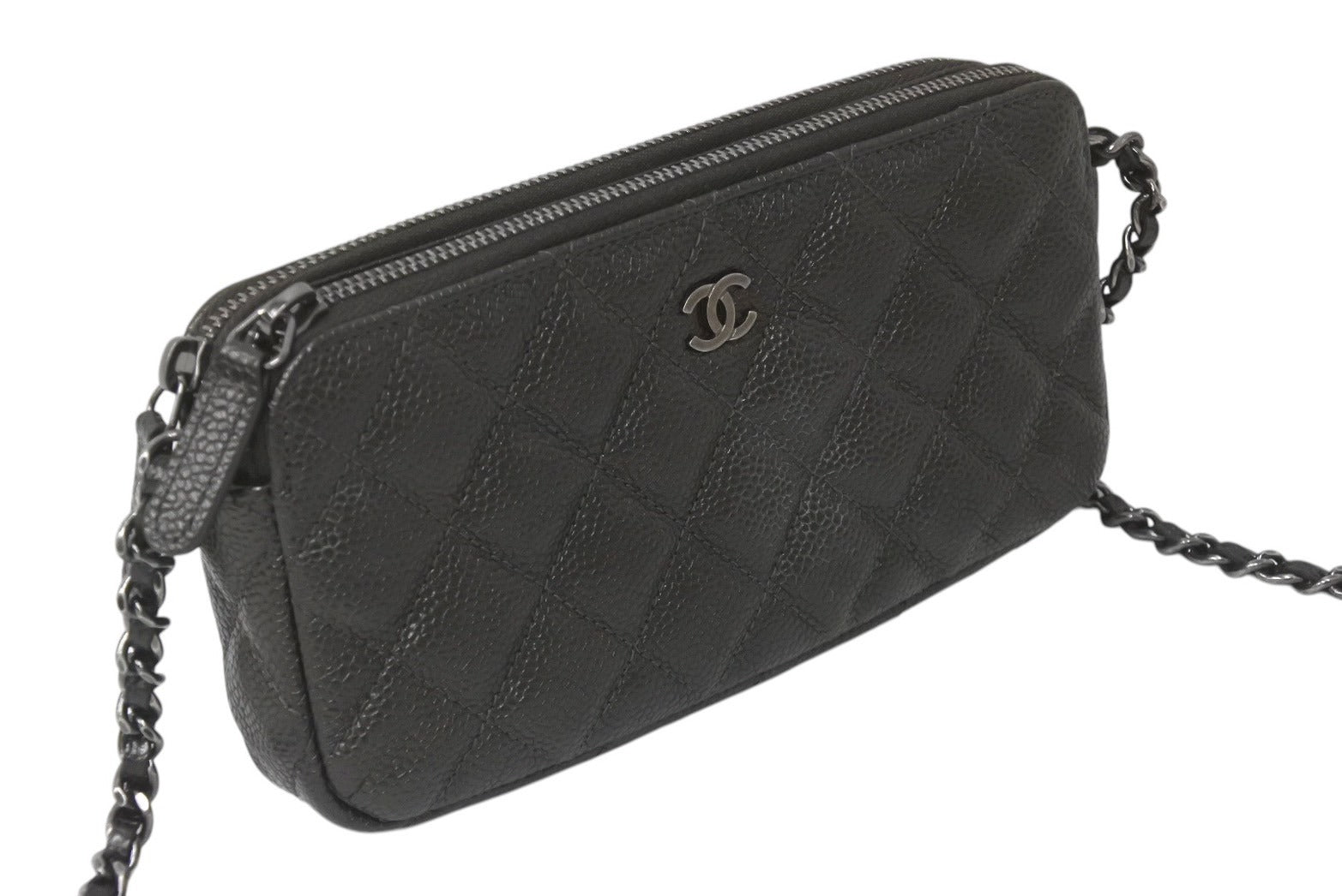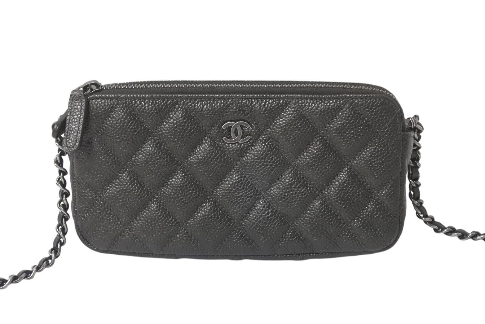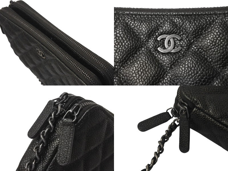 新品同様 CHANEL シャネル チェーンショルダーバッグ チェーンウォレット マトラッセ 23番台 グレー キャビアスキン シルバー金具 中古 4c076344