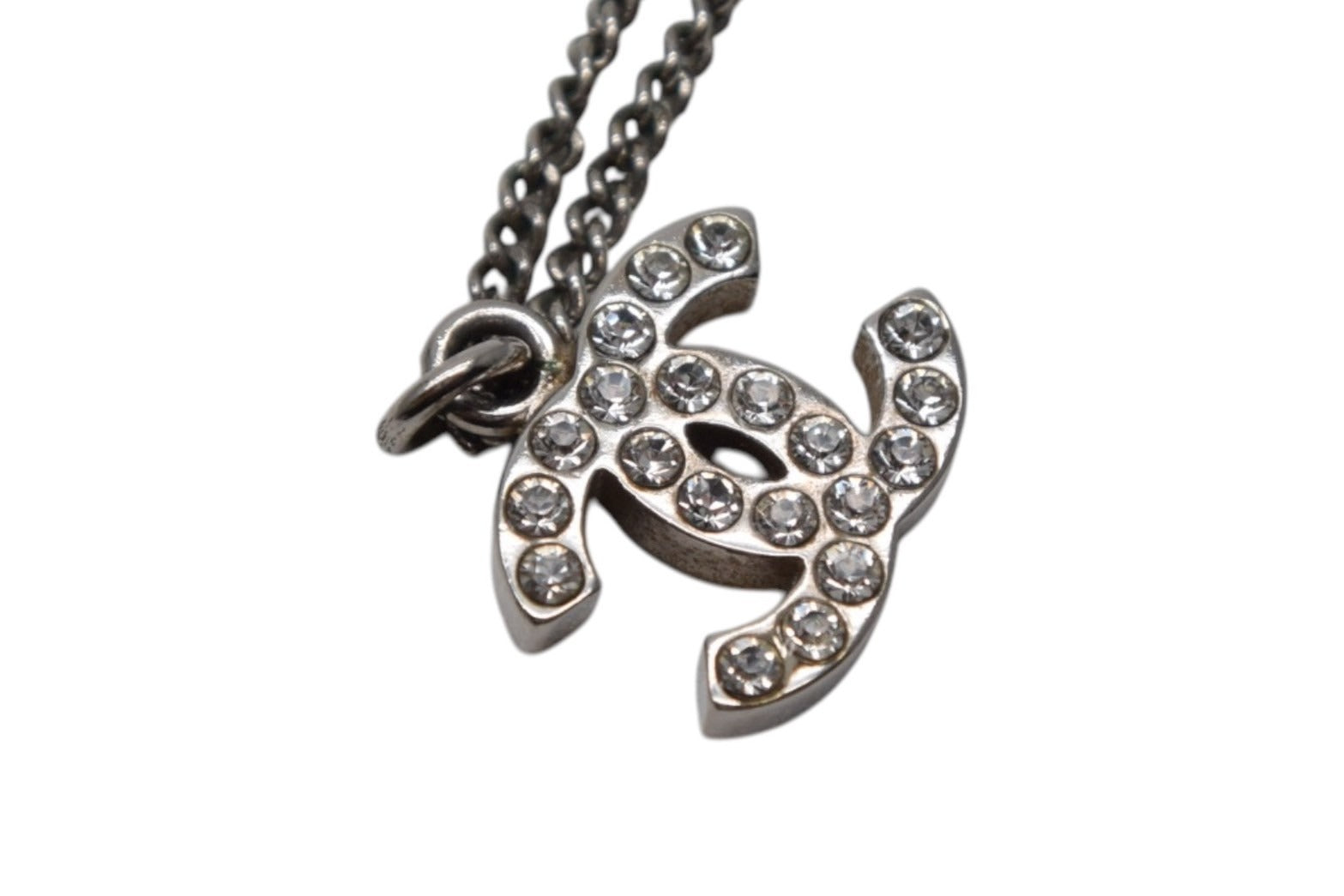 CHANEL シャネル ココマーク ネックレス 重量約5.9g 全長約44cm C12V刻印 シルバー メタル ラインストーン 美品 中古 4c076480