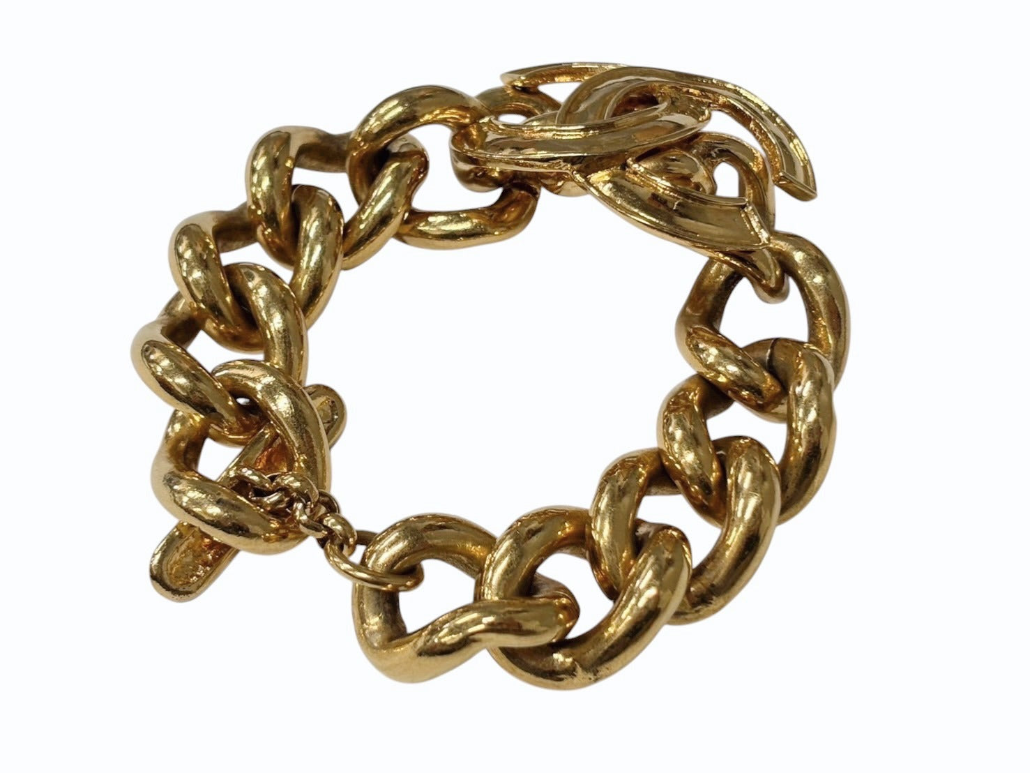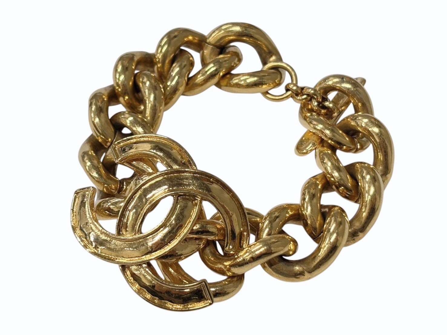 極美品 CHANEL シャネル VINTAGE ヴィンテージ ココマーク ブレスレット 重量約78.1g 全長約19.5cm 94P刻印 ゴールド メタル GP 中古 64958