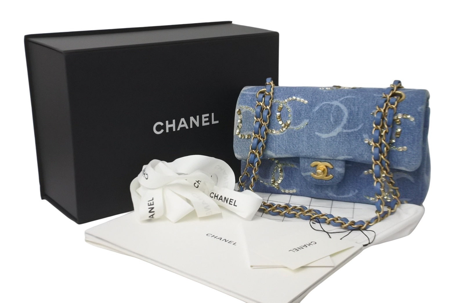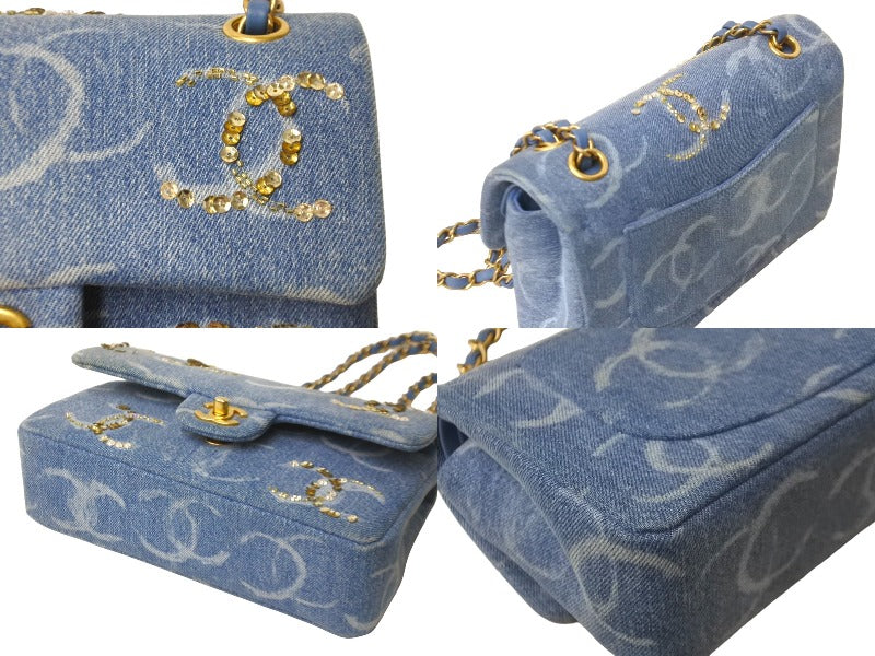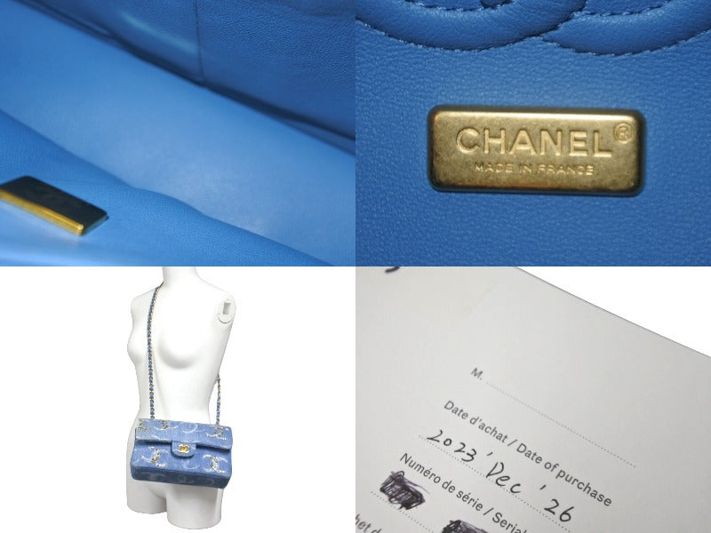 新品同様 世界完売品 CHANEL シャネル チェーンショルダーバッグ パーツ付き マトラッセ ランダム デニム ブルー ゴールド金具 62676