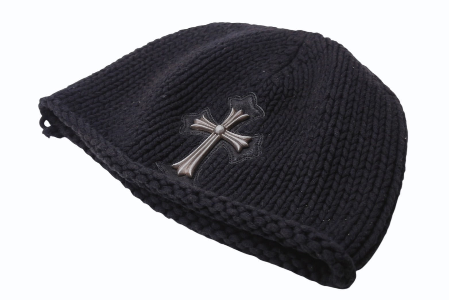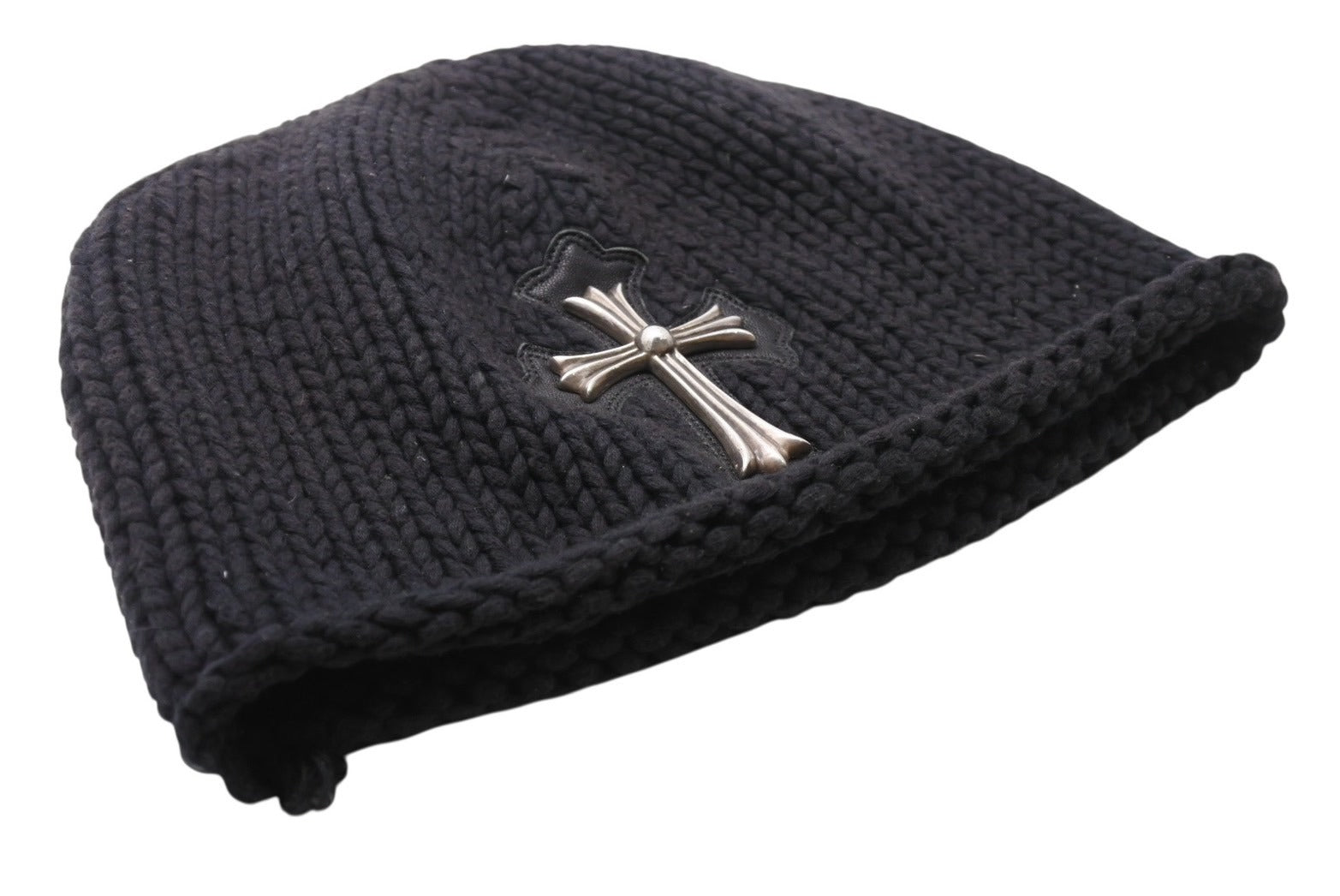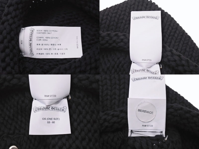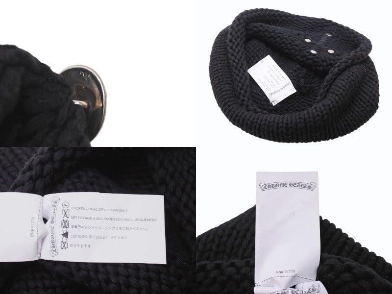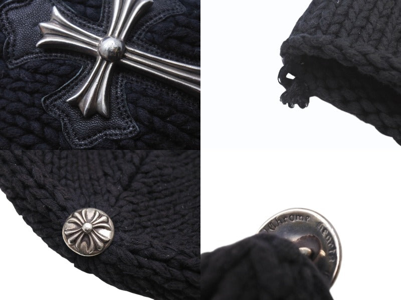 CHROME HEARTS クロムハーツ ラージクロス ビーニー ニット帽 カシミヤ シルバー925 カーフレザー ブラック ONE SIZE 美品 中古 4b003722